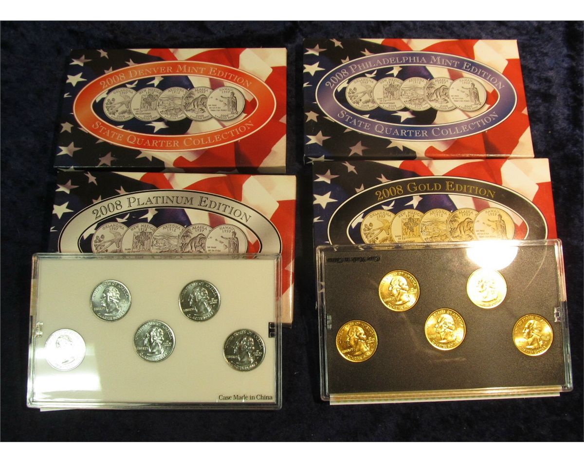 922. 2008 Philadelphia, Denver. Gold & Platinum State Hood Quarter Sets. In Display Cases.
