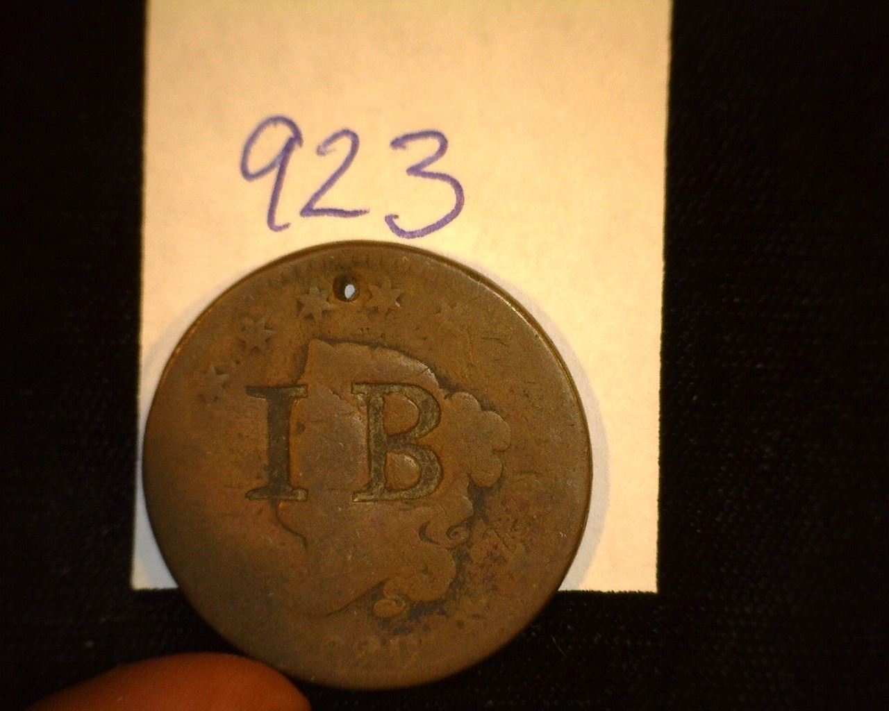 923.1820 US large Cent Counter marked "IB".