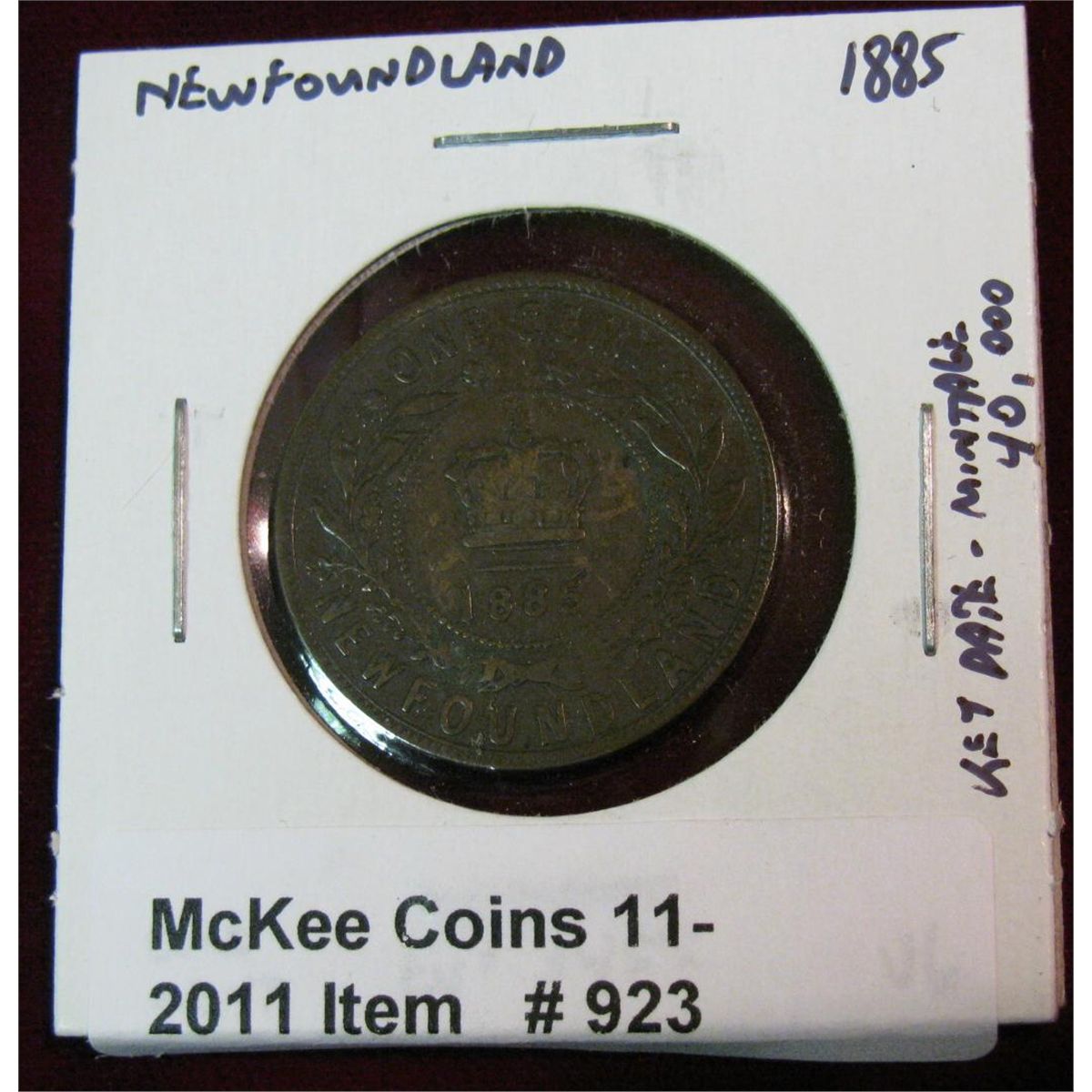 923. 1885 New Foundland Cent. VG Catalog $45.00