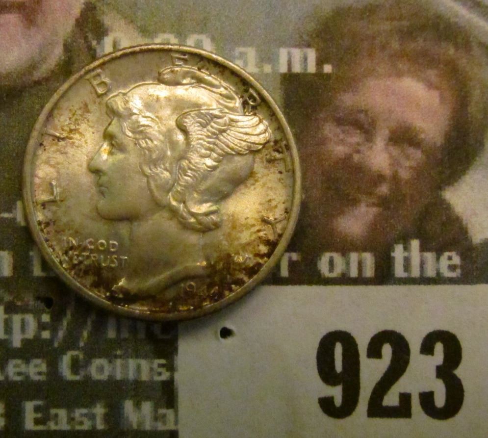 923 _ 1944 P Mercury Dime, attractively toned GEM BU 65. FSB.