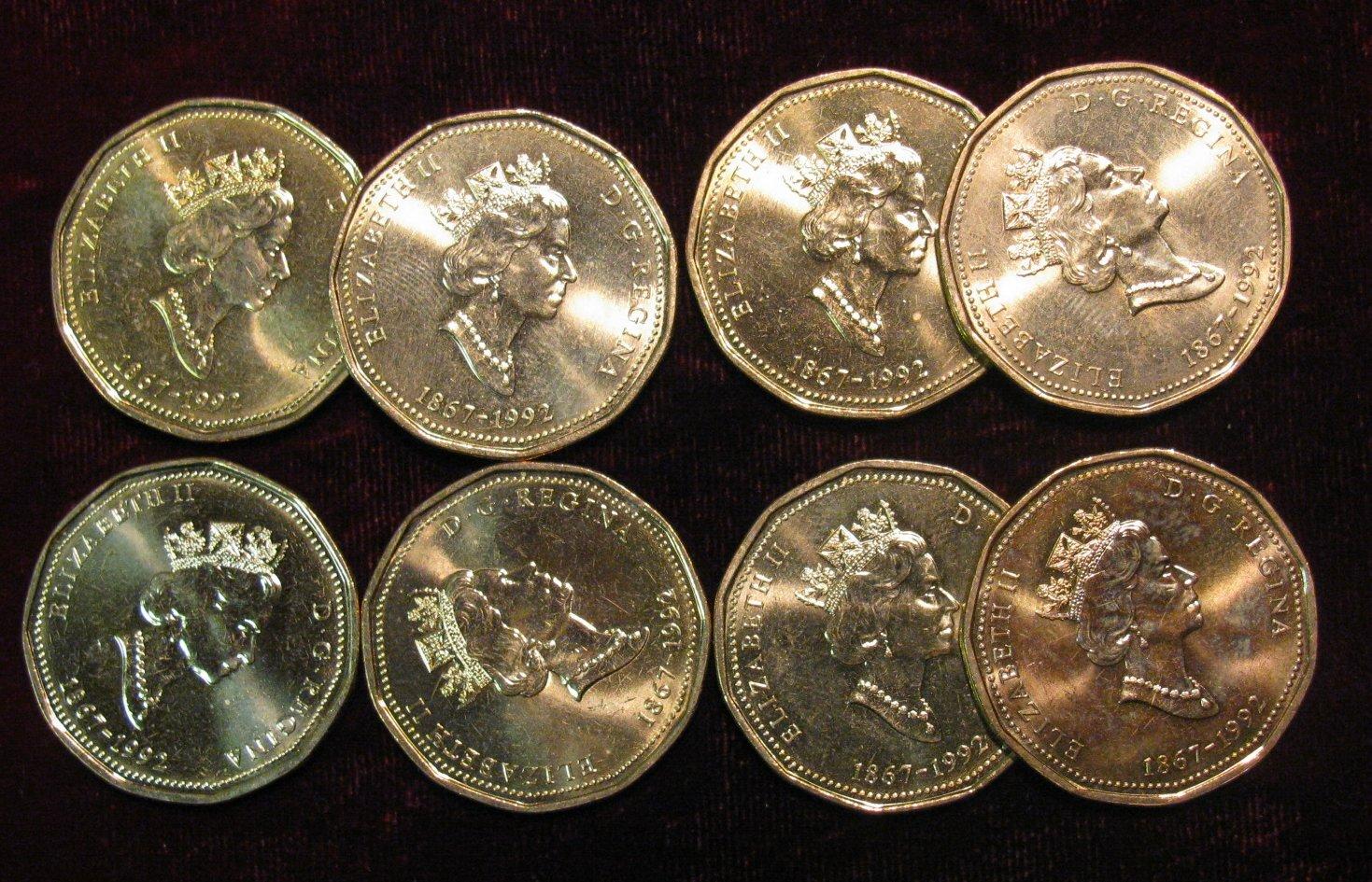 924. Canada (8)1867-1992 Loon Dollars. BU.