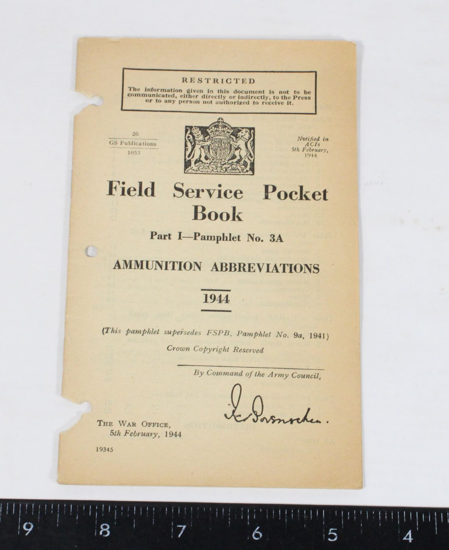 AMMUNITION ABBREVIATIONS INFORMATION WORLD WAR TWO RESTRICTED DOCUMENT
