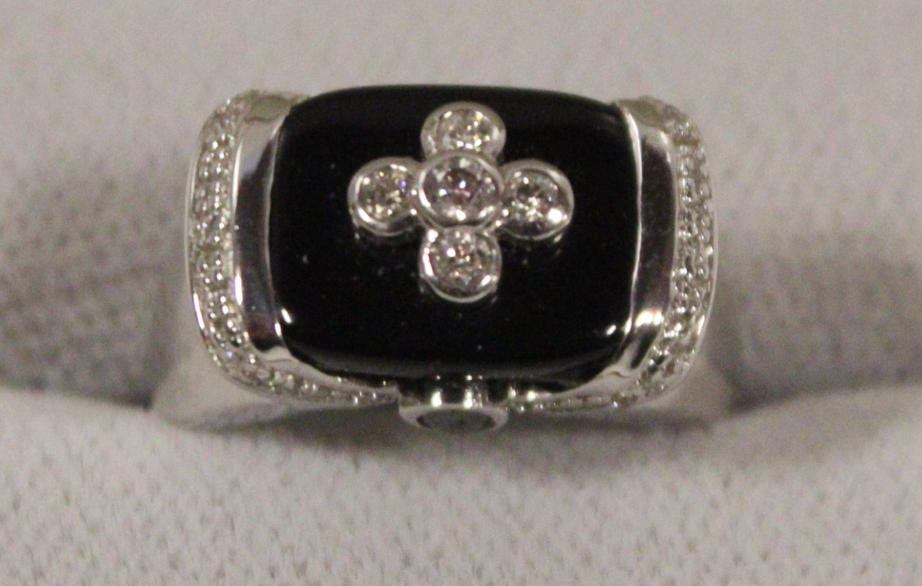 925 INDIA SILVER, ONYX & DIAMOND RING-6.65 GRAMS