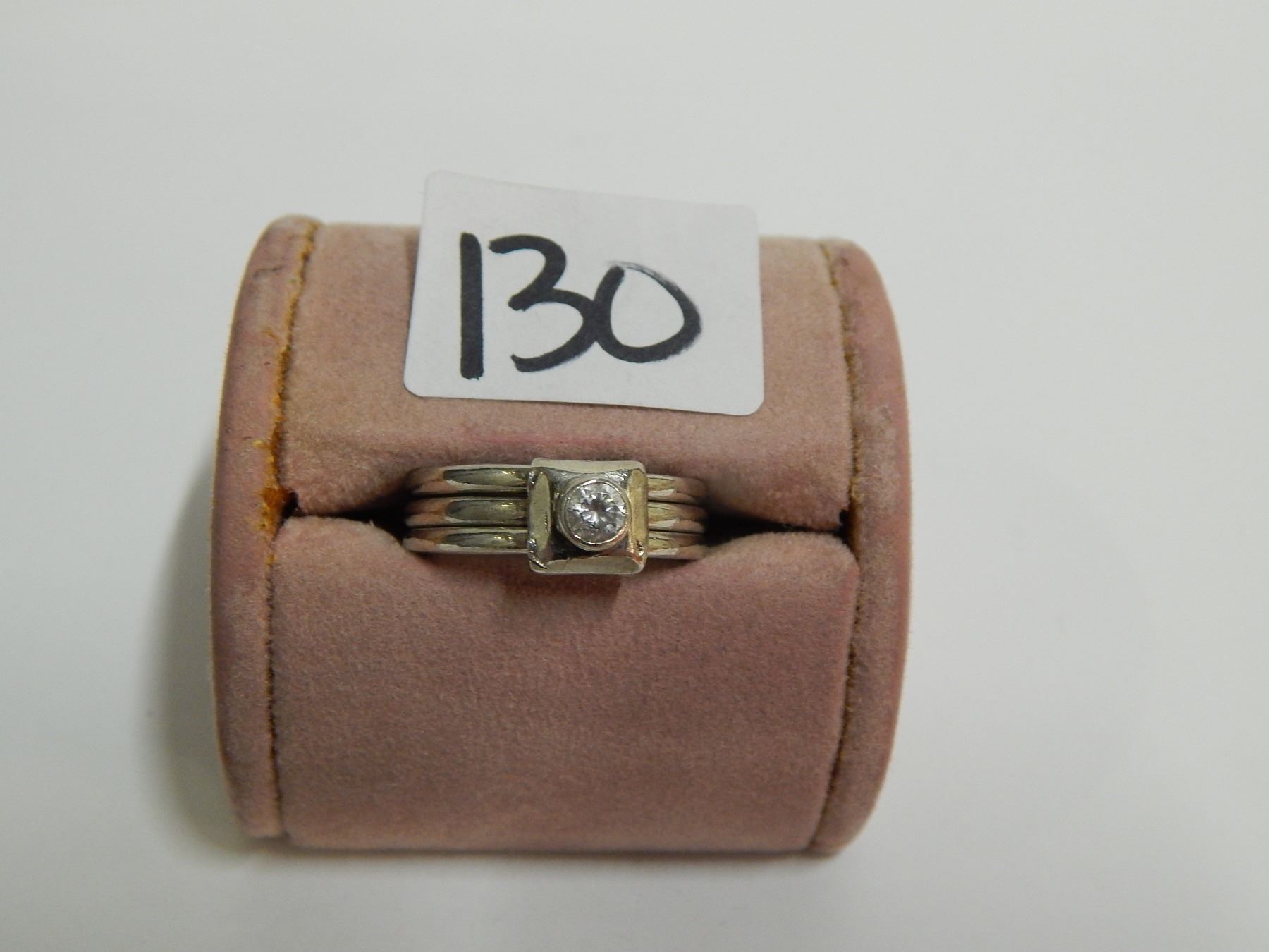 925 STERLING SILVER TRIPLE RING WITH CUBIC ZIRCONIA STONE AROUND EACH RING. SIZE 7 1/2 - 6.3 gr.