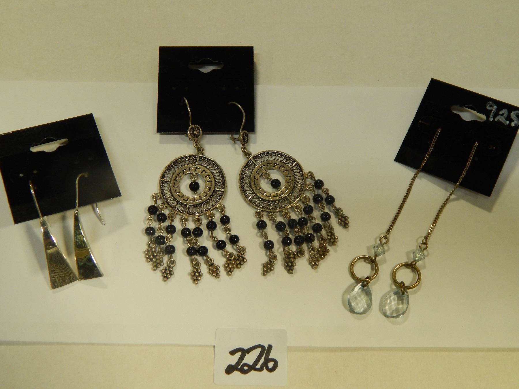 925 JEWLERY/BLUE CRYSTAL DROP EARRINGS/TRIANGLE EARRINGS/ROUND BLACK BEAD EARRINGS