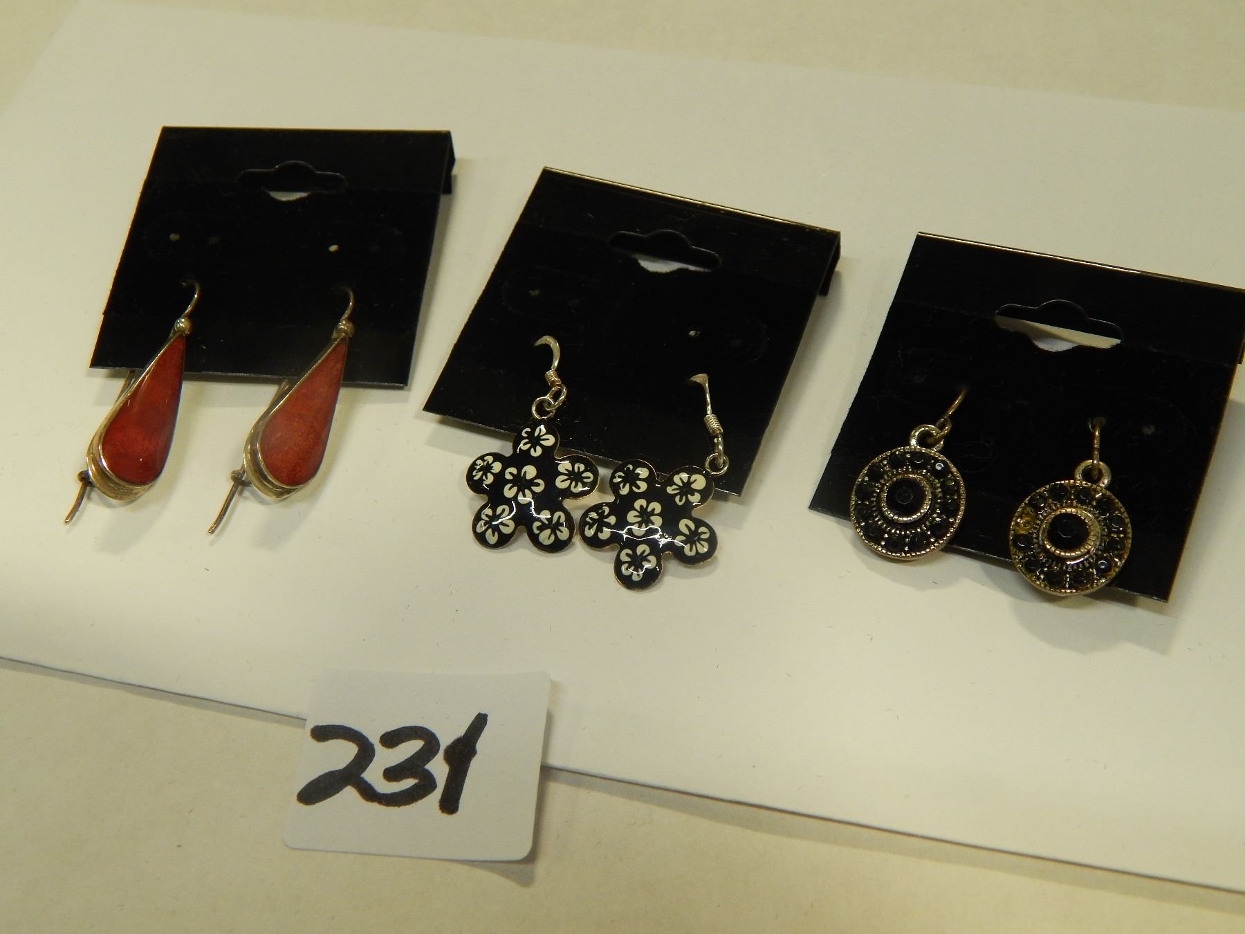 925 JEWLERY/BLACK WITH WWHITE DAISY'S/BLACK CRYSTAL EARRINGS/RED STONE TEAR DROP EARRINGS