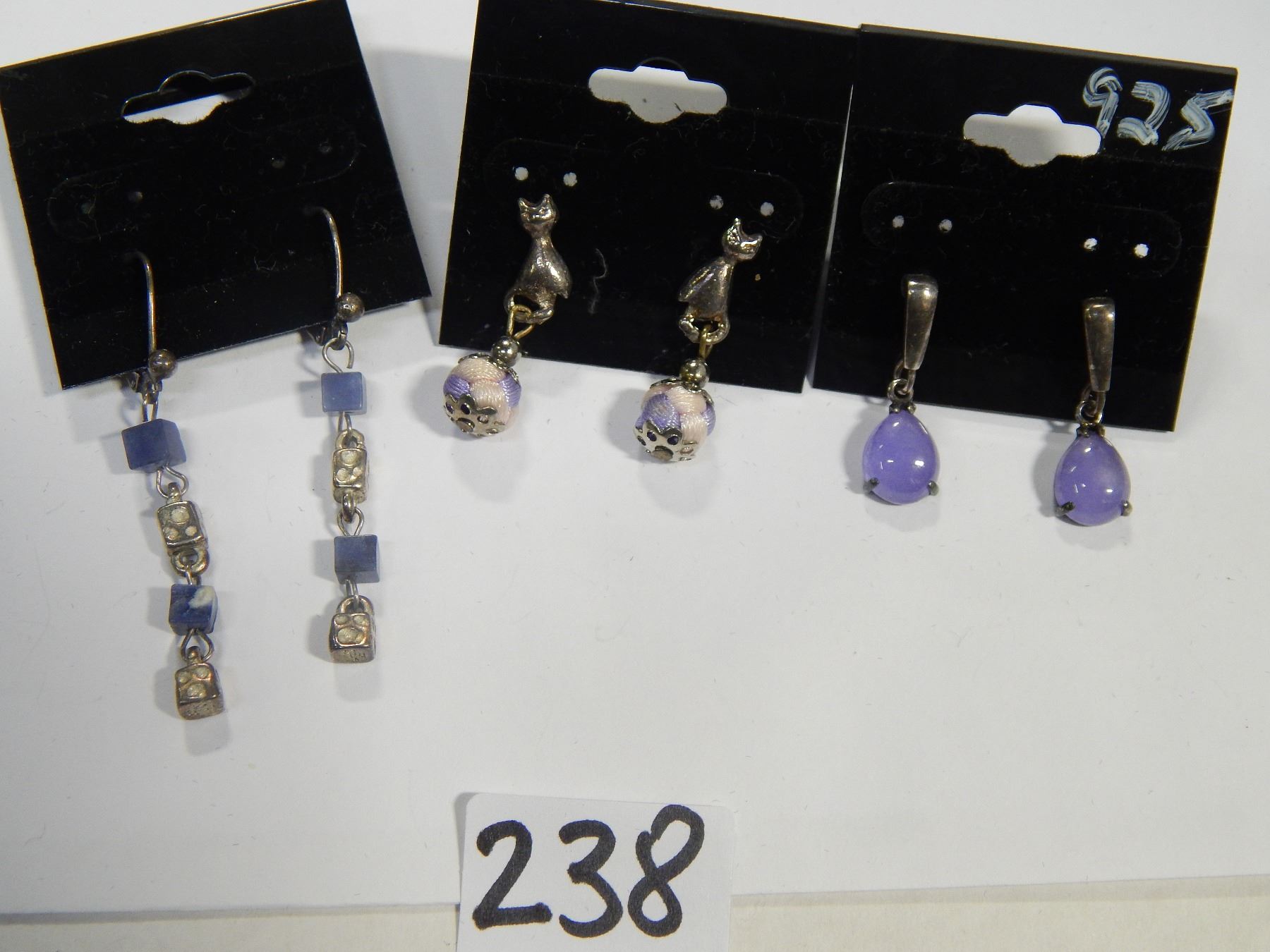 935 JEWLERY/PURPLE STONE EARRINGS/PINK & PURPLE CAT YARN EARRINGS/DK.PURPLE SQUARE EARRINGS