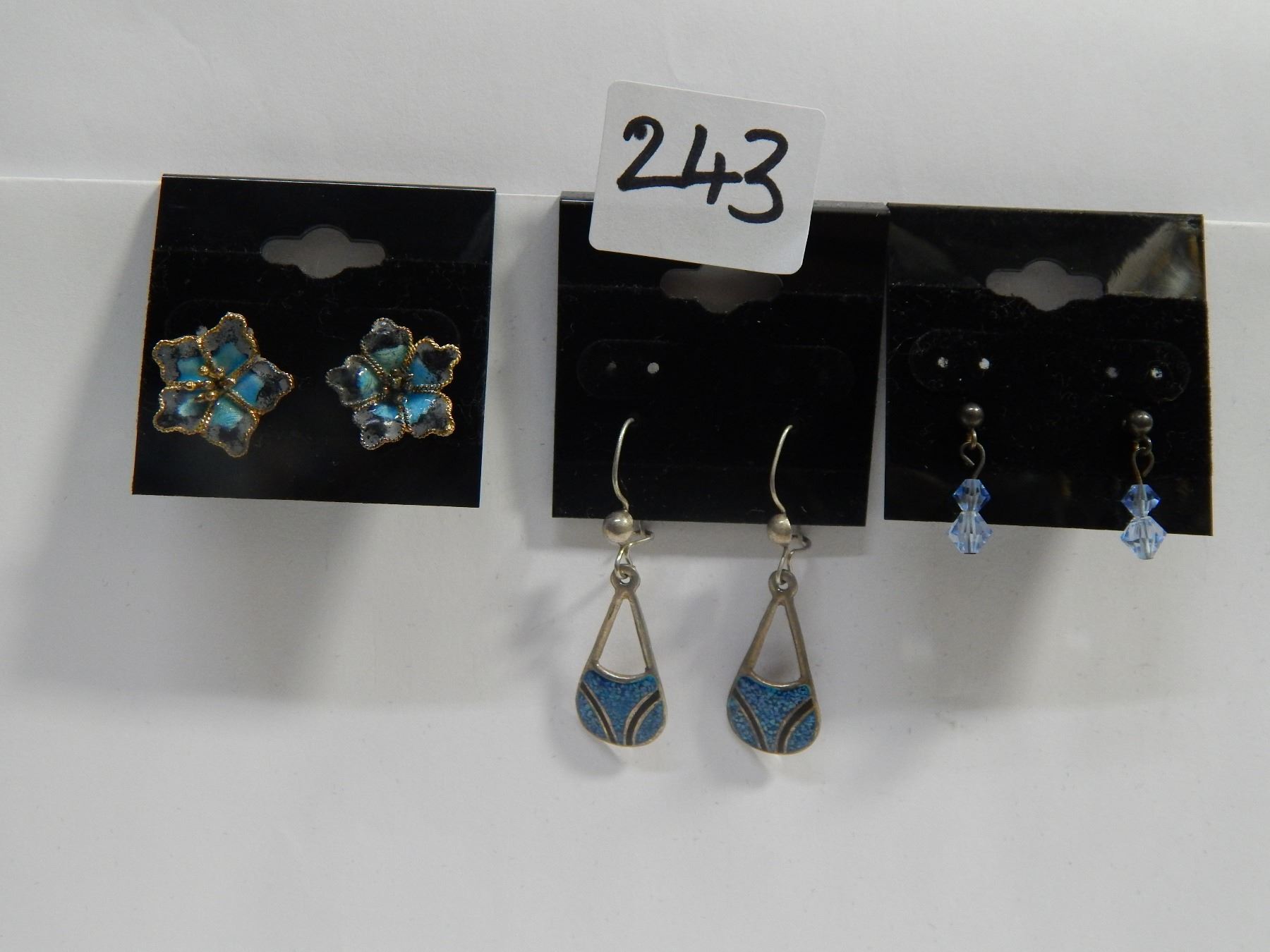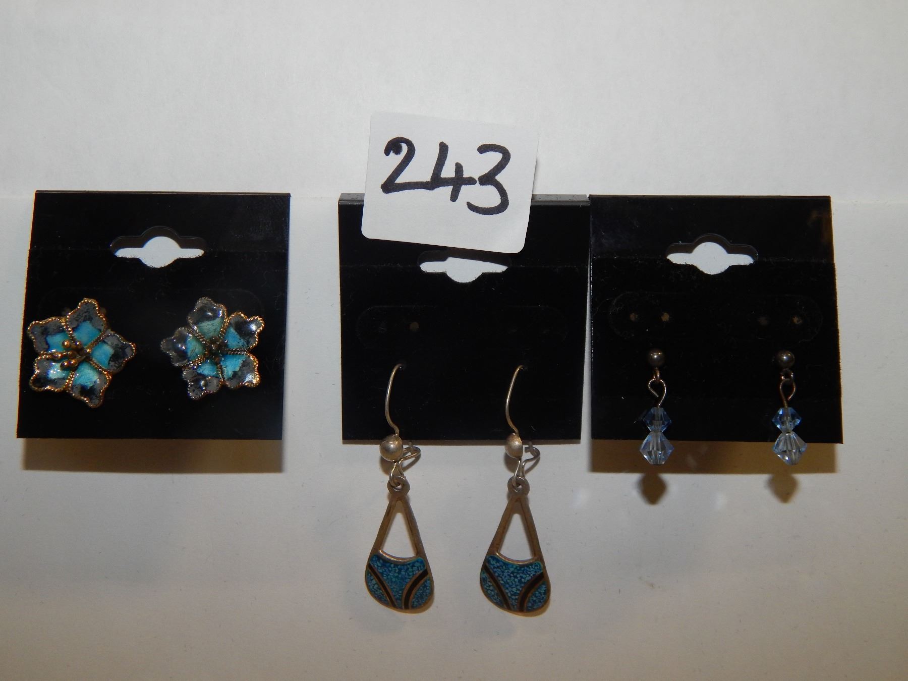 925 JEWLERY/HAWWIAN TURQUISE FLOWER EARRINGS/BLUE & BLACK TEAR DROP/BLUE CRYSTAL EARRINGS