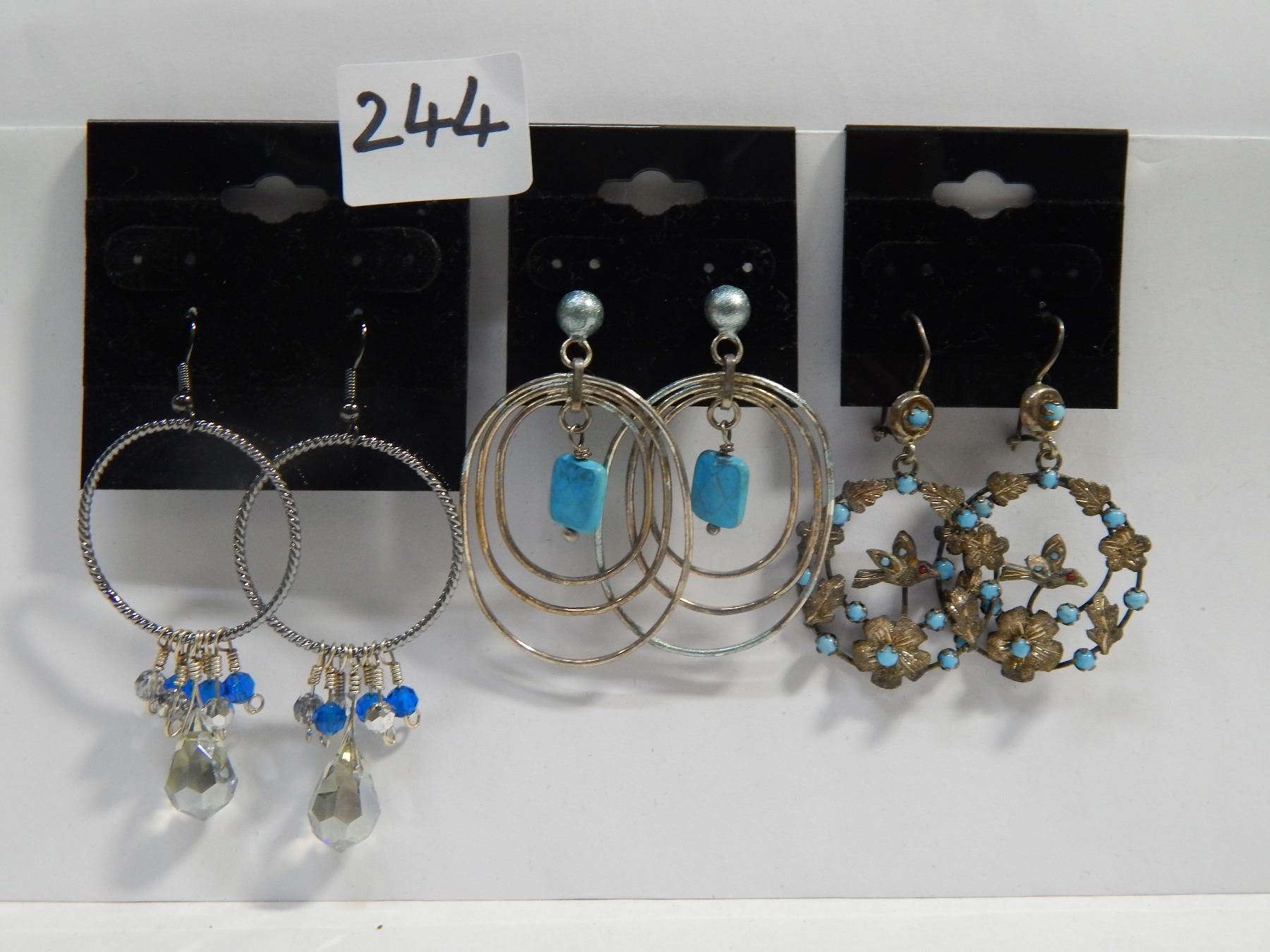 925 JEWLERY/TURQUISE FLOWER ROUND EARRINGS/DK BLUE EARRINGS/TRPLE RING BLUE EARRINGS