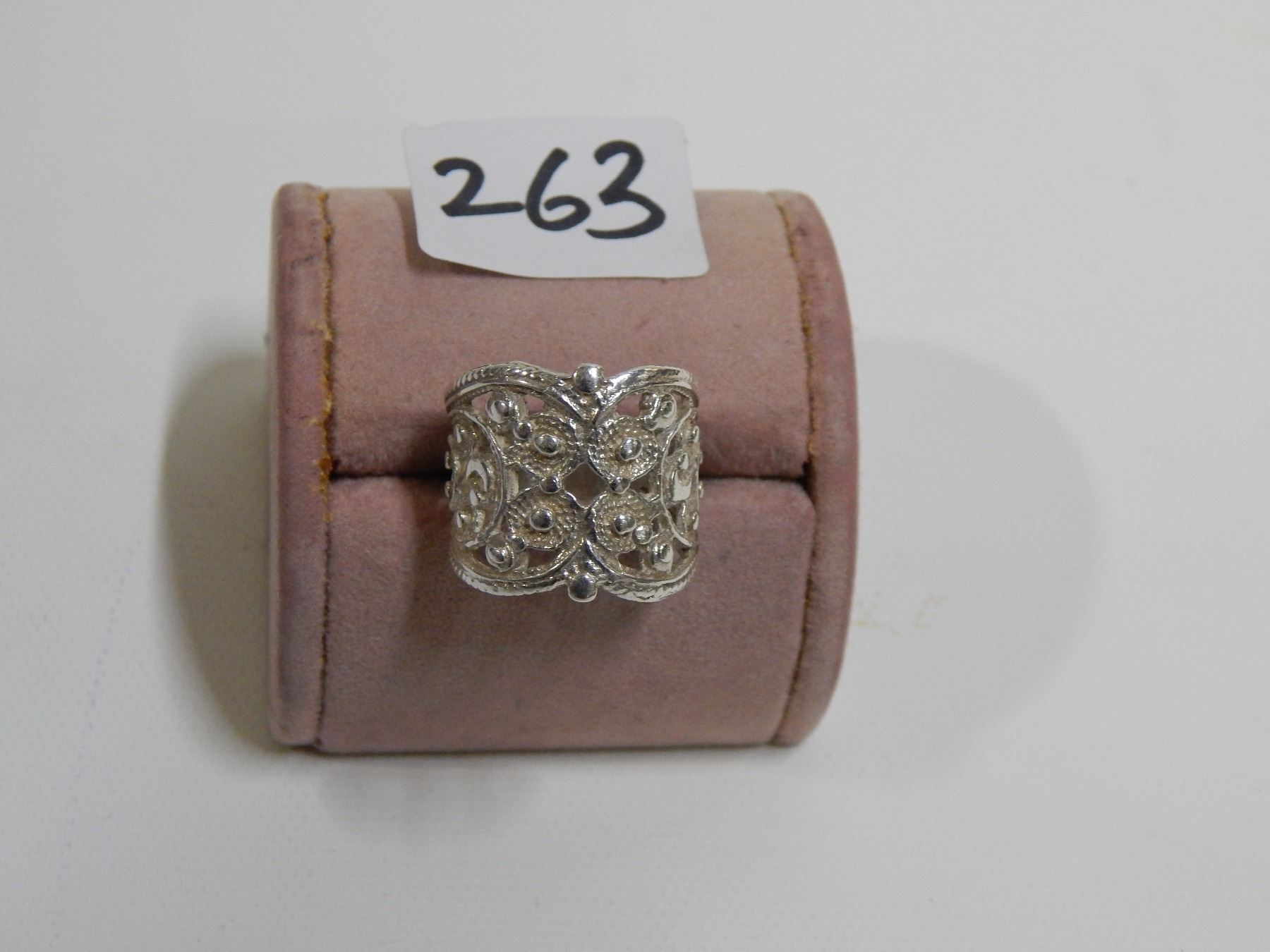 925 JEWLERY/HALF IN. THICK DESIGN BAND RING SIZE 6 AND A HALF