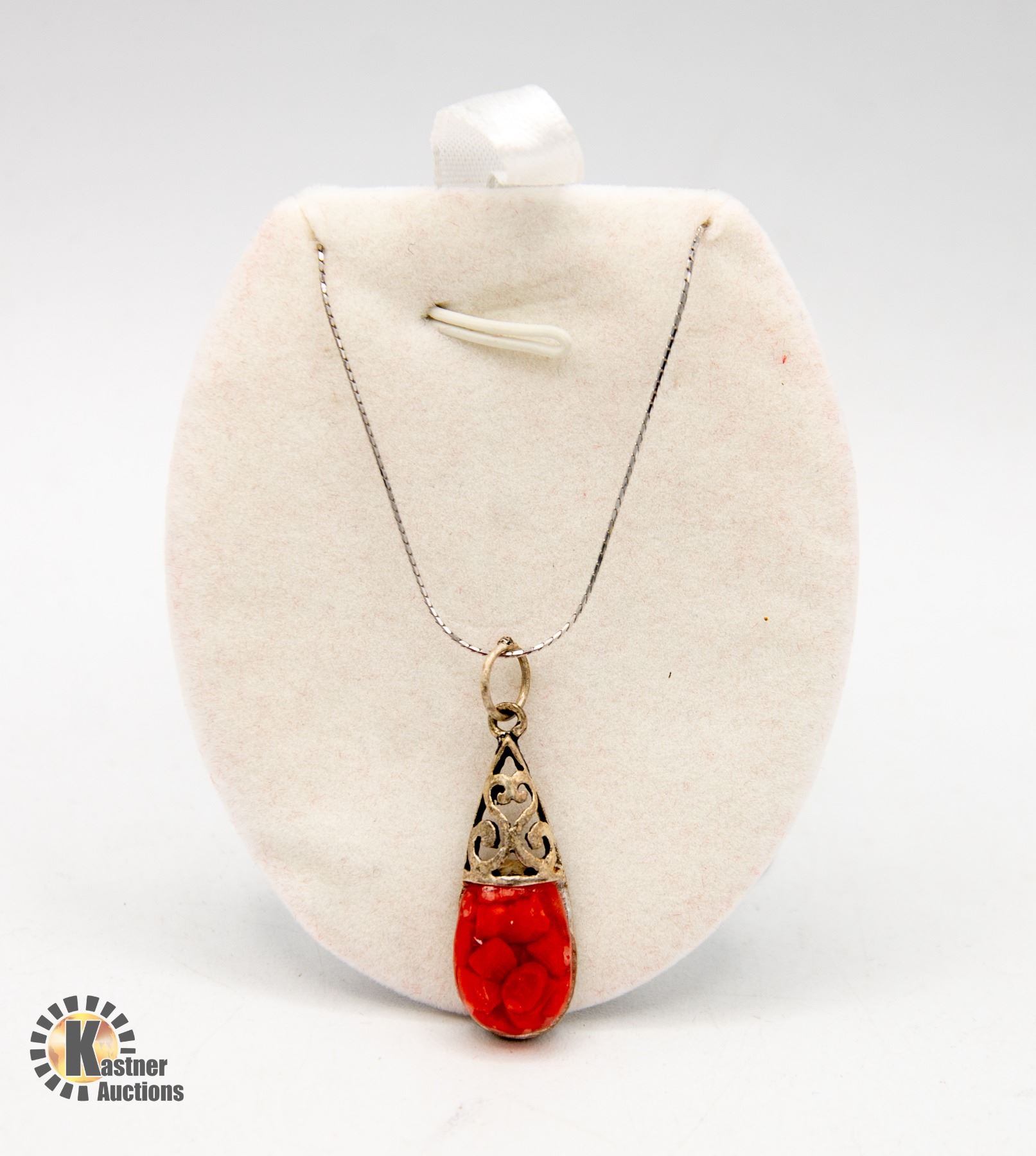 925 SILVER AND PINK STONE FILIGREE PENDANT