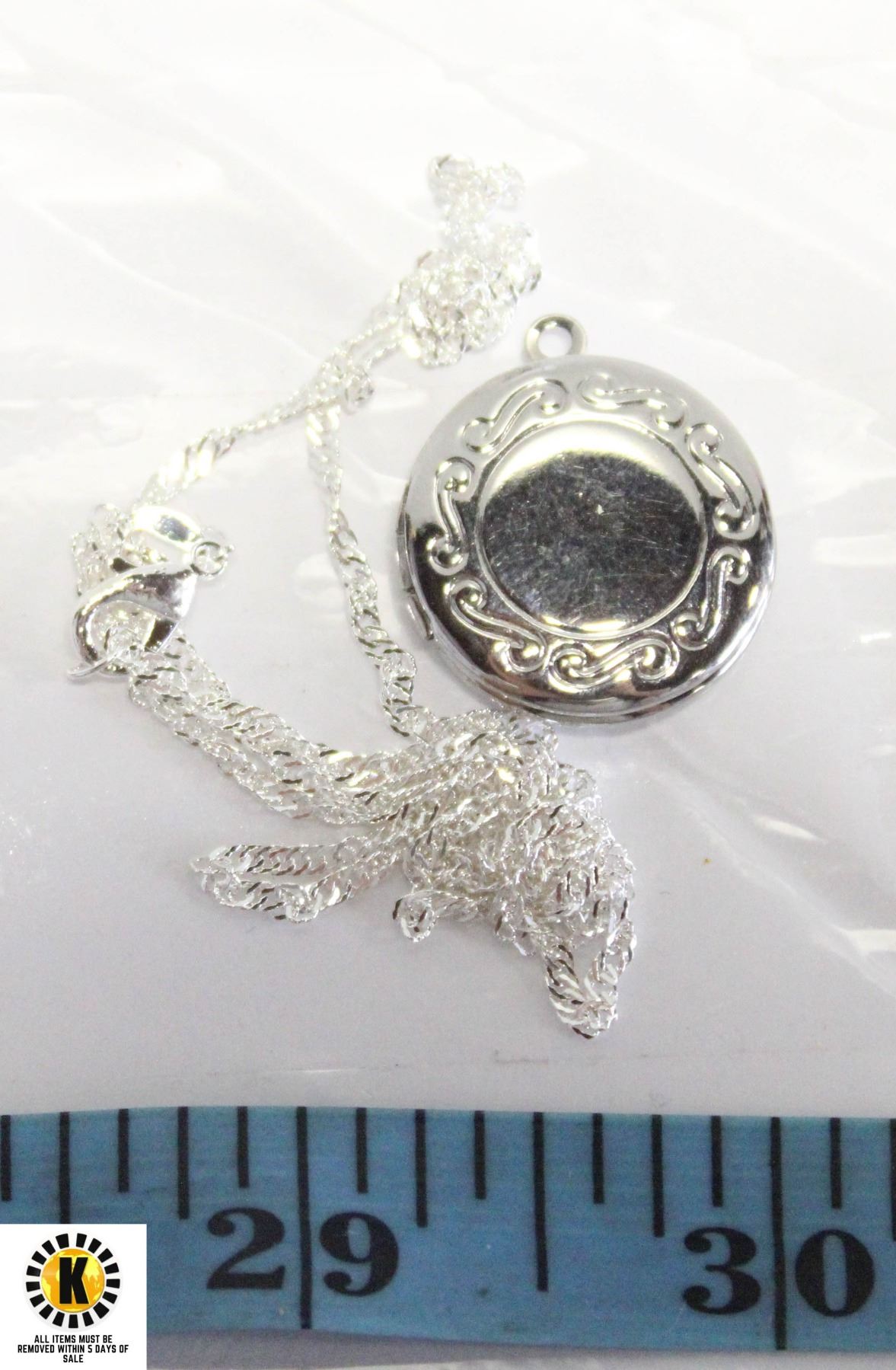925 SILVER NECKLACE & ROUND LOCKET PENDANT-ESTATE