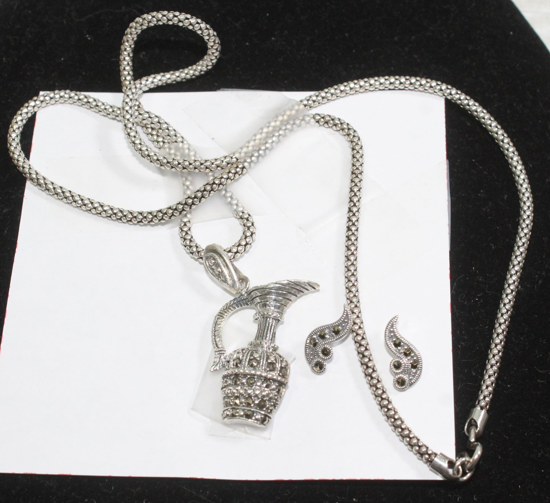 .925 SILVER NECKLACE WITH PENDANT & EARRINGS