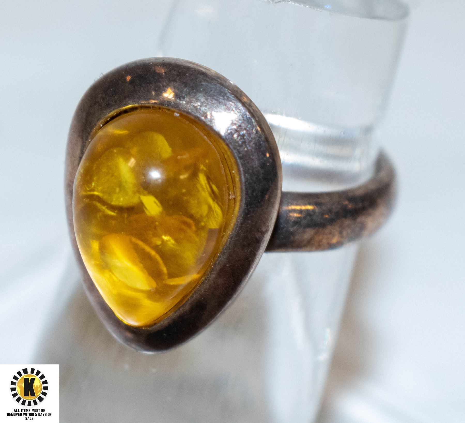 925 SILVER RING SIZE 6.75 WITH YELLOW STONE