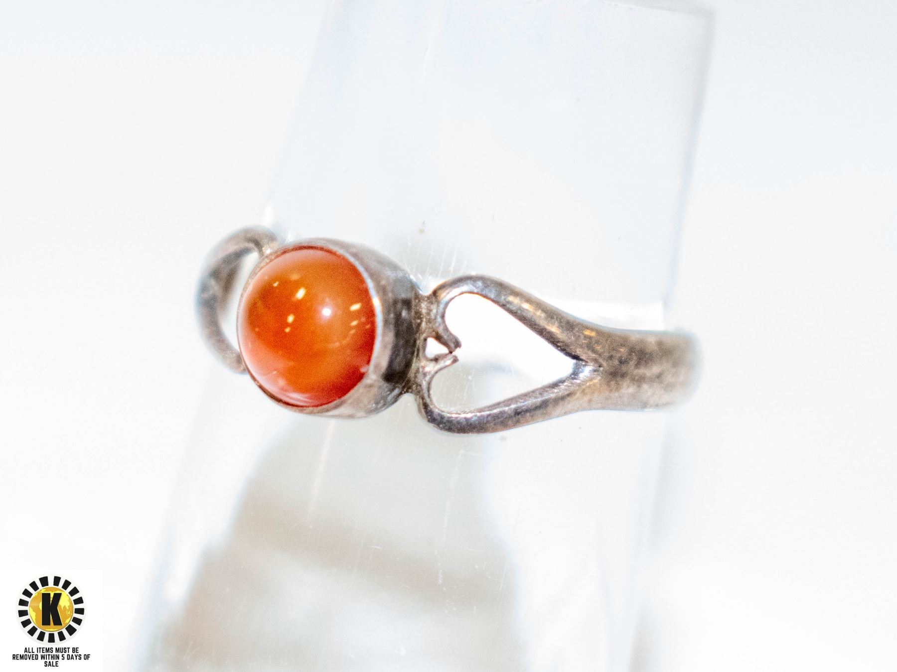 925 SILVER RING SIZE 7.25 AMBER STONE