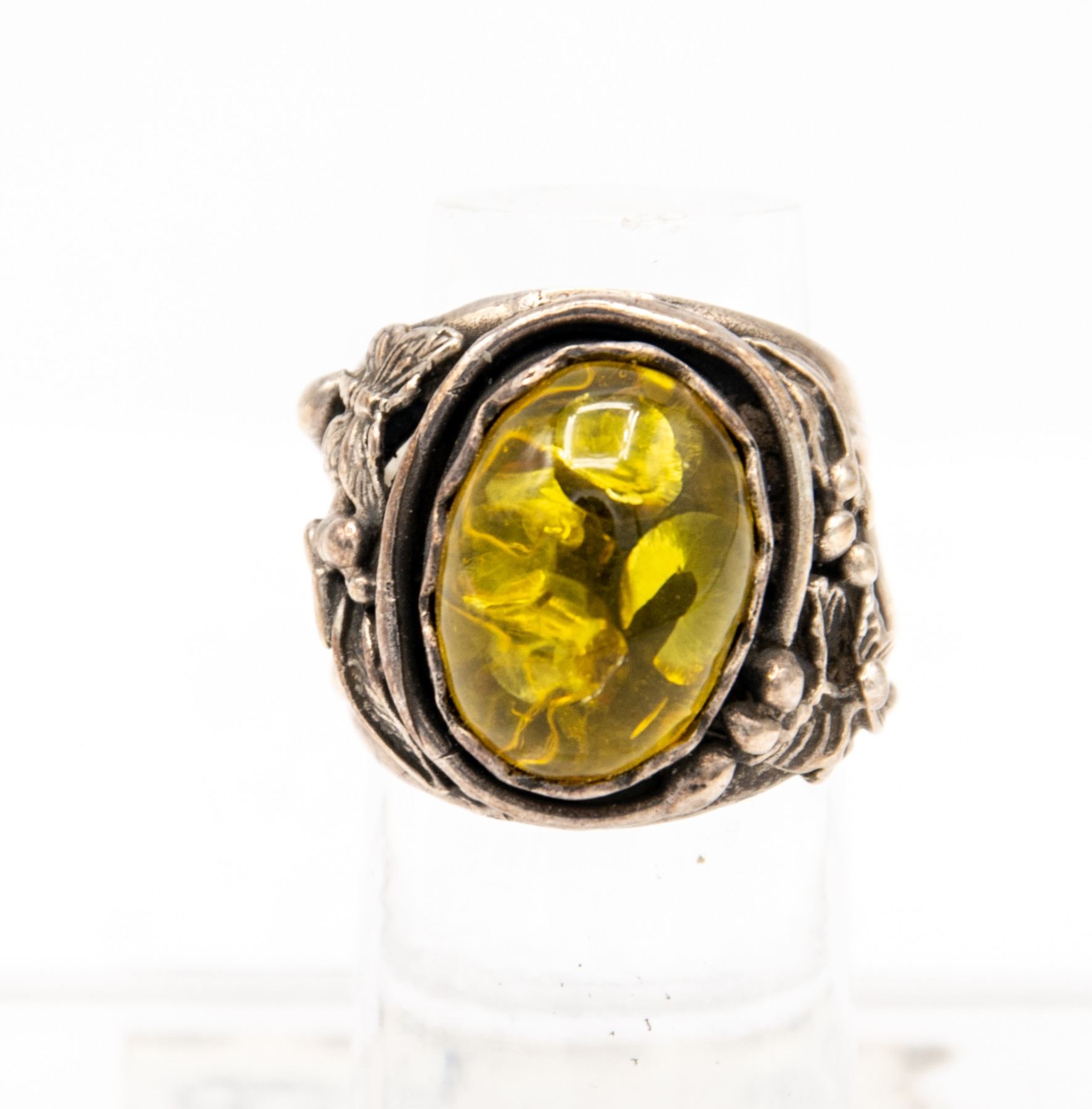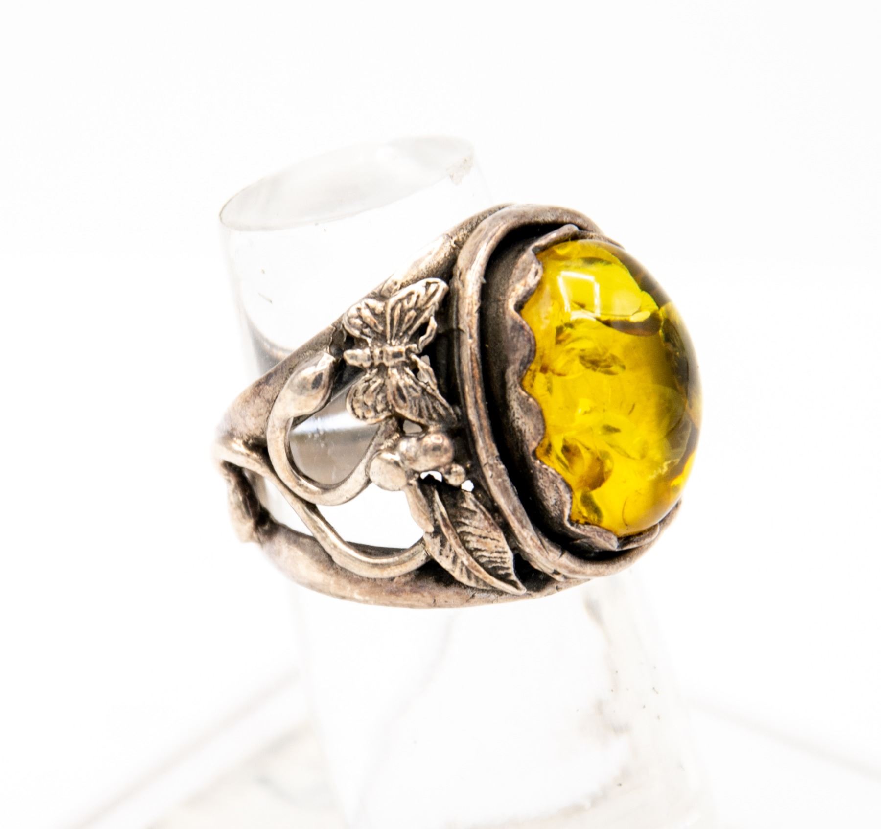 925 SILVER RING SIZE 7.5 WITH LARGE YELLOW STONE