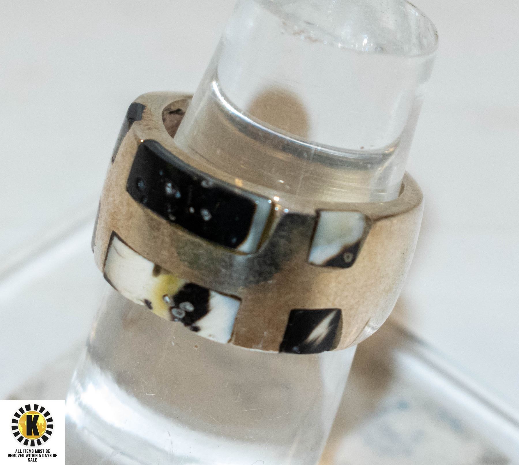 925 SILVER RING SIZE 7.75 BLACK WHITE INLAY