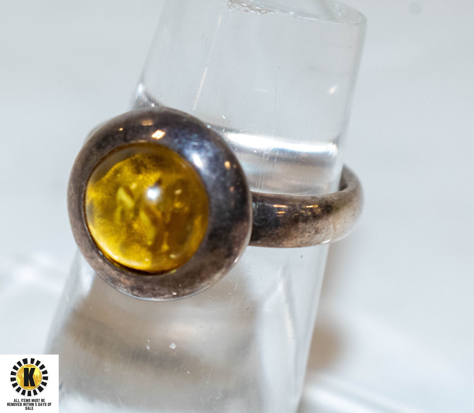 925 SILVER RING SIZE 7.75 YELLOW STONE