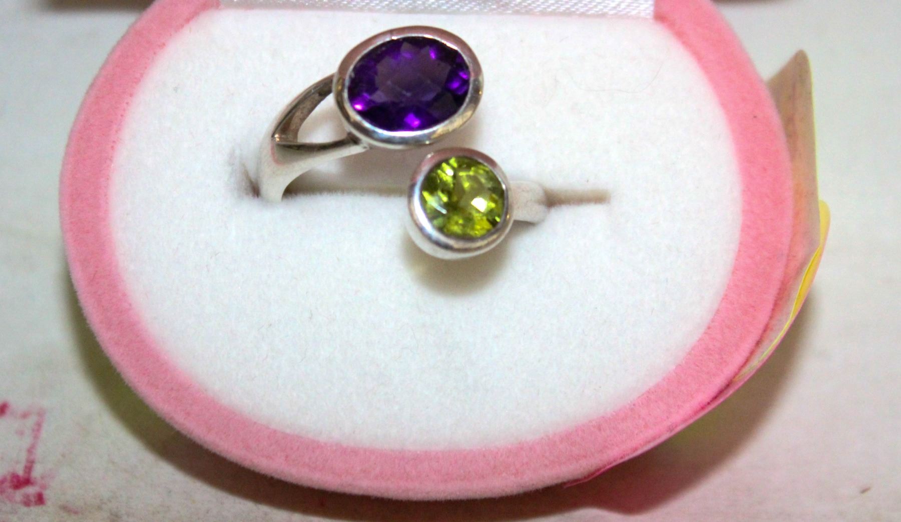 925 SILVER RING SIZE 7 PURPLE GREEN STONES