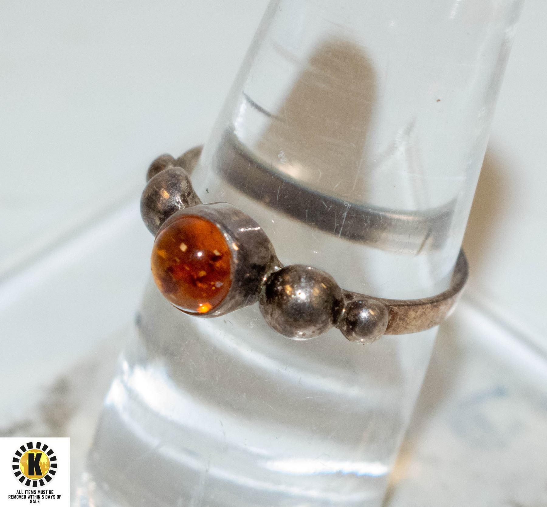 925 SILVER RING SIZE 8.5 AMBER STONE