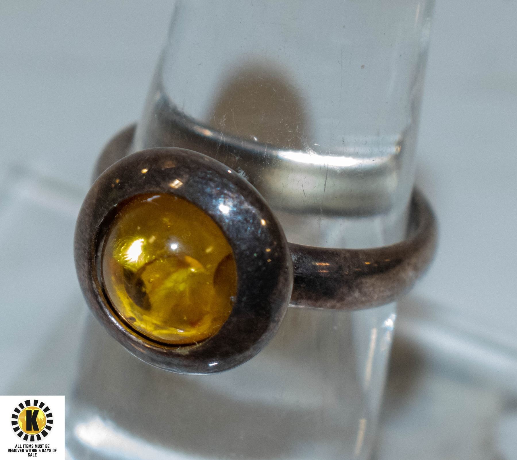 925 SILVER RING SIZE 8 YELLOW STONE