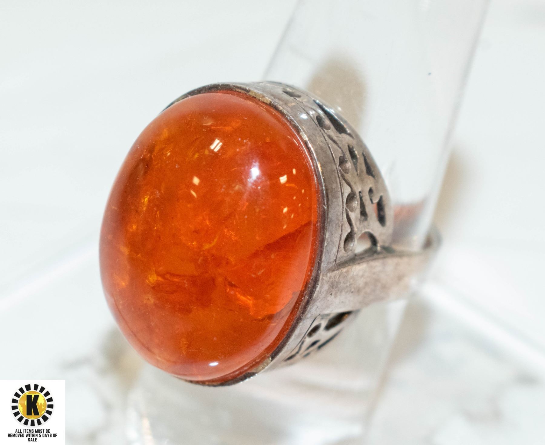 925 SILVER RING SIZE 9.5 ORANGE STONE