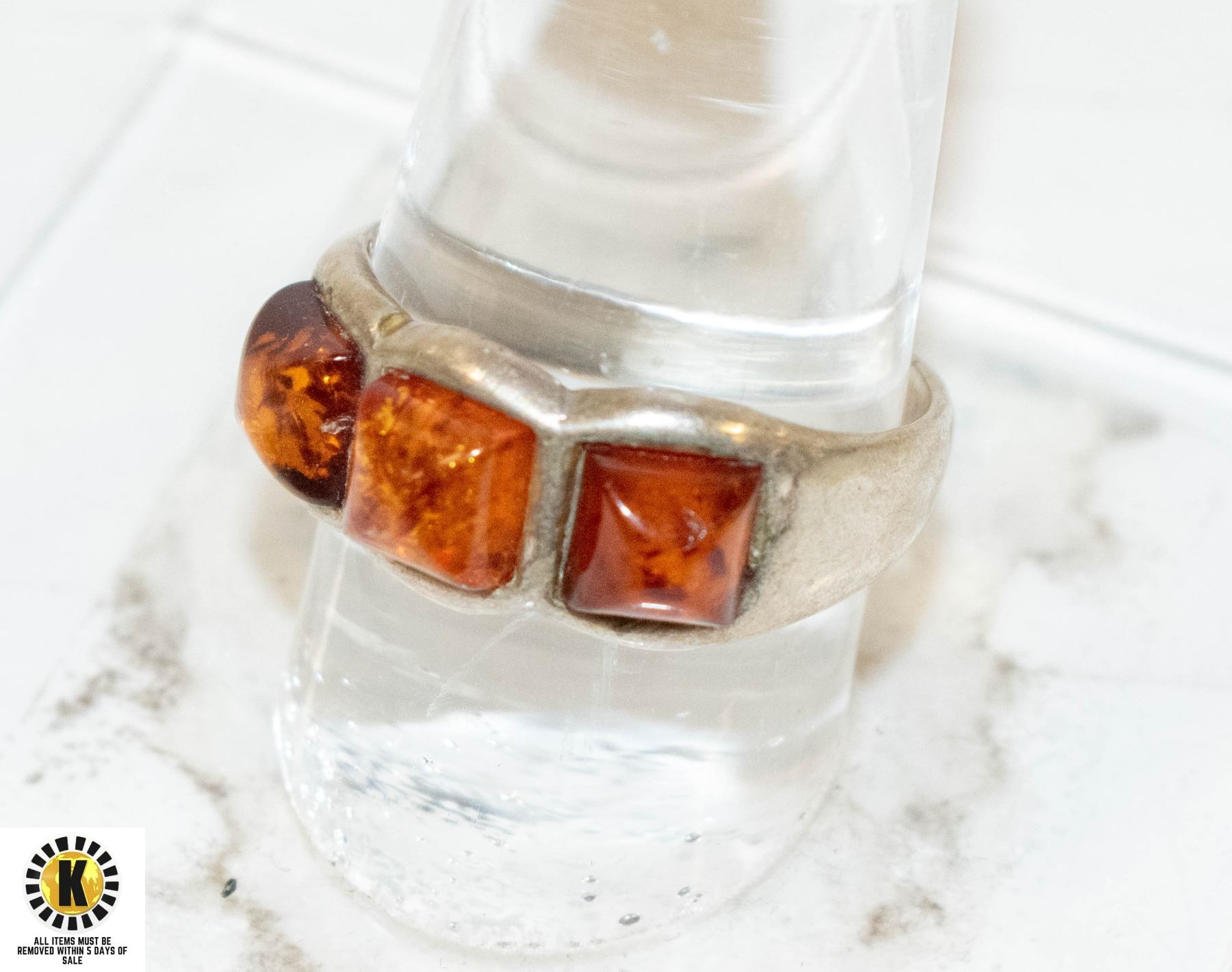 925 SILVER RING SIZE 9.75 AMBER STONES