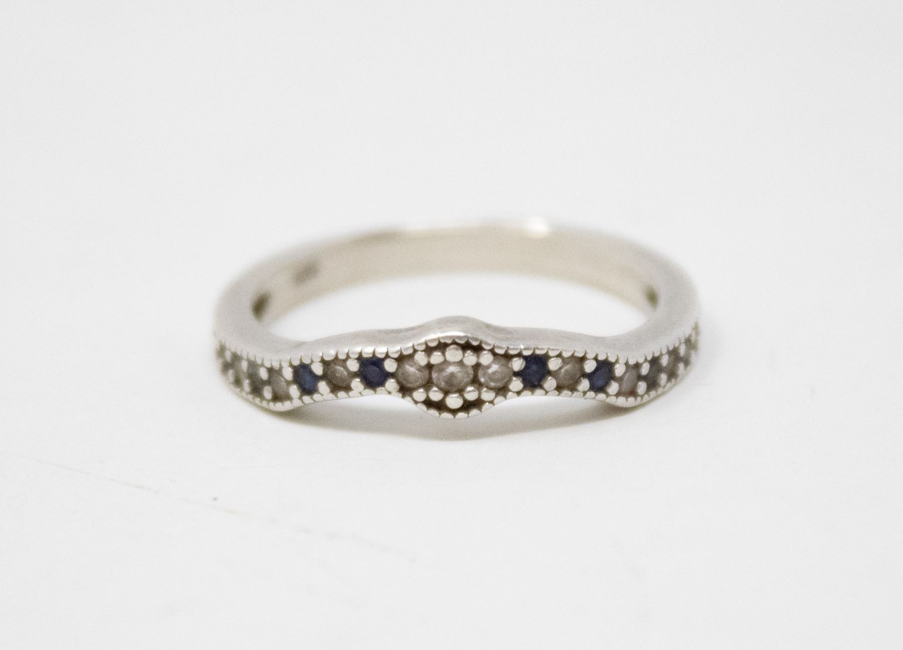 925 SILVER RING W SM DIAMOND AND SAPPHIRES