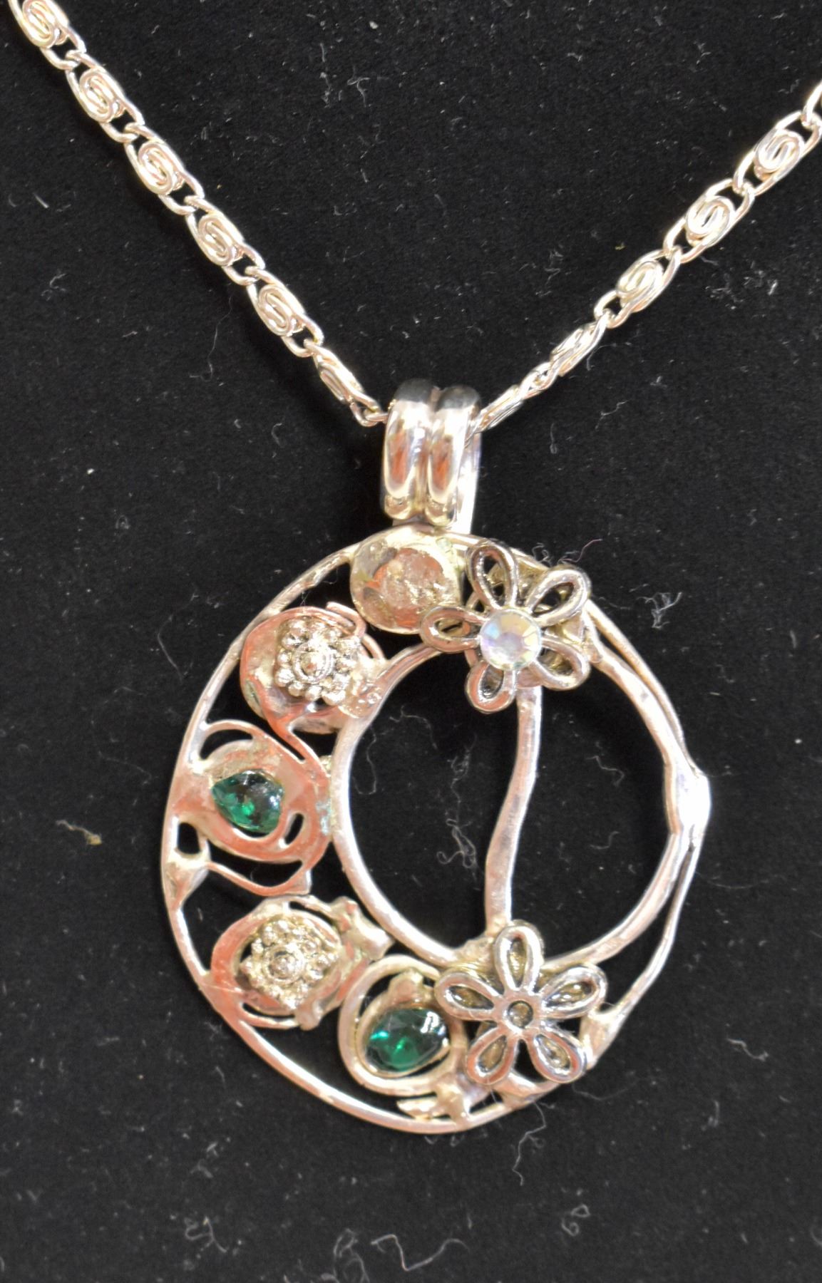 .925 SILVER STAMPED CHAIN AND GEMSTONE PENDANT