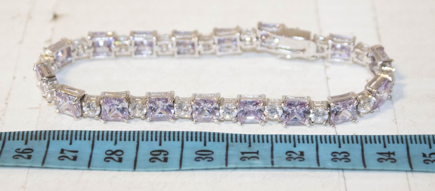 925 SILVER TENNIS BRACELET W PINK & CLEAR STONES