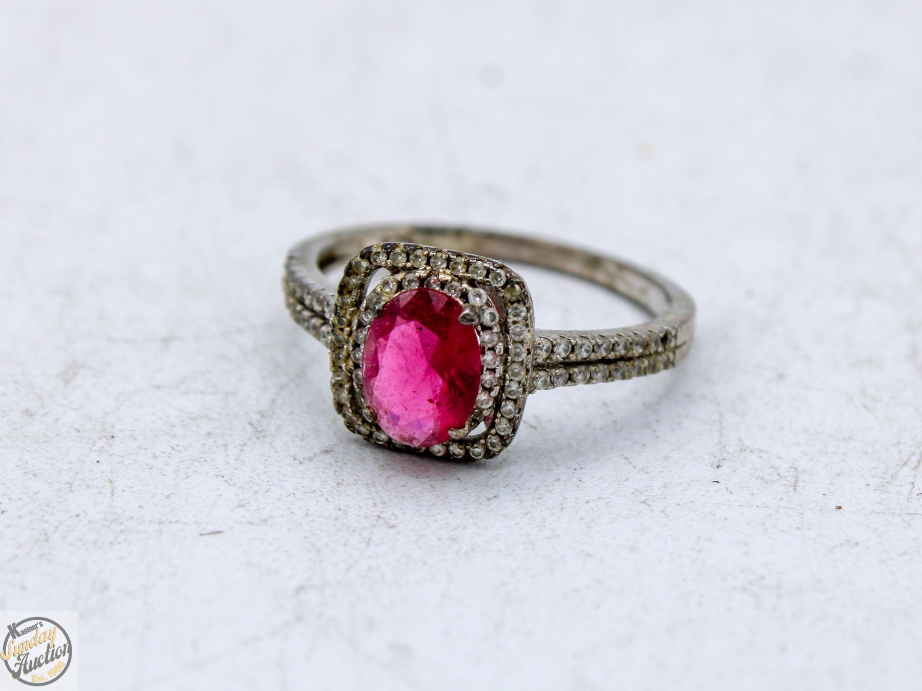 925 STAMPED 2.4 GRAM SILVER RING PINK CENTER