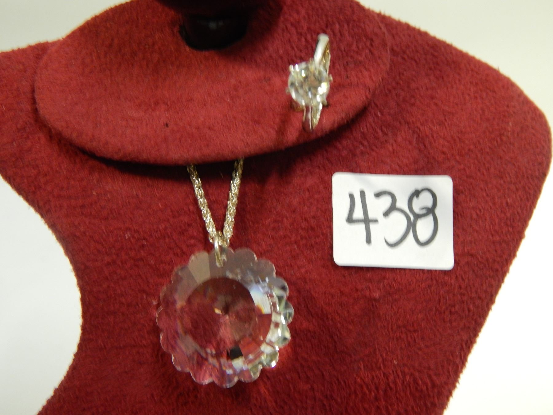 925 STERLING SILVER/CUBOC ZIRCONIAN RING SIZE 6.5 2.2G SOLITAIRE/18IN CHAIN SUN CRYSTAL PENDANT 14.8G