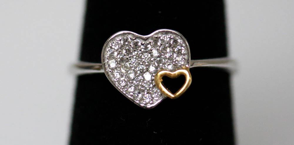 .925 STERLING SILVER HEART RING W/ CLEAR CZ **|**|** .925 STERLING SILVER HEART RING W/ CLEAR CZ SIZE:6