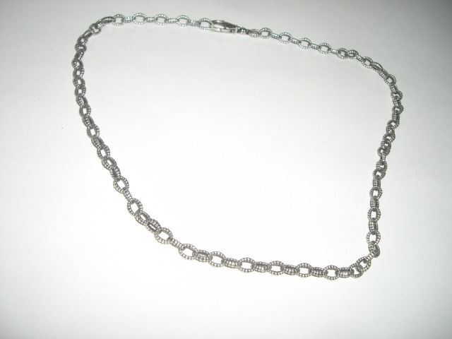 .925 STERLING SILVER HEAVY SOLID NECKLACE WITH BEAUTIFUL WELL DETAILED DESIGN STAMPED *.925* TOTAL WEIGHT IS 19.0g-HAS A HEAVY DUTY CLASP!! NECKLACE CAME OUT OF SAFE BOX!! ***Coin, Currency & All Items Listed in this auction - Grades, Conditions and Values are not Safe Deposit Coins LLC Responsibilty. Grades, Condition and Values are determined by Consigner(s) & Buyers