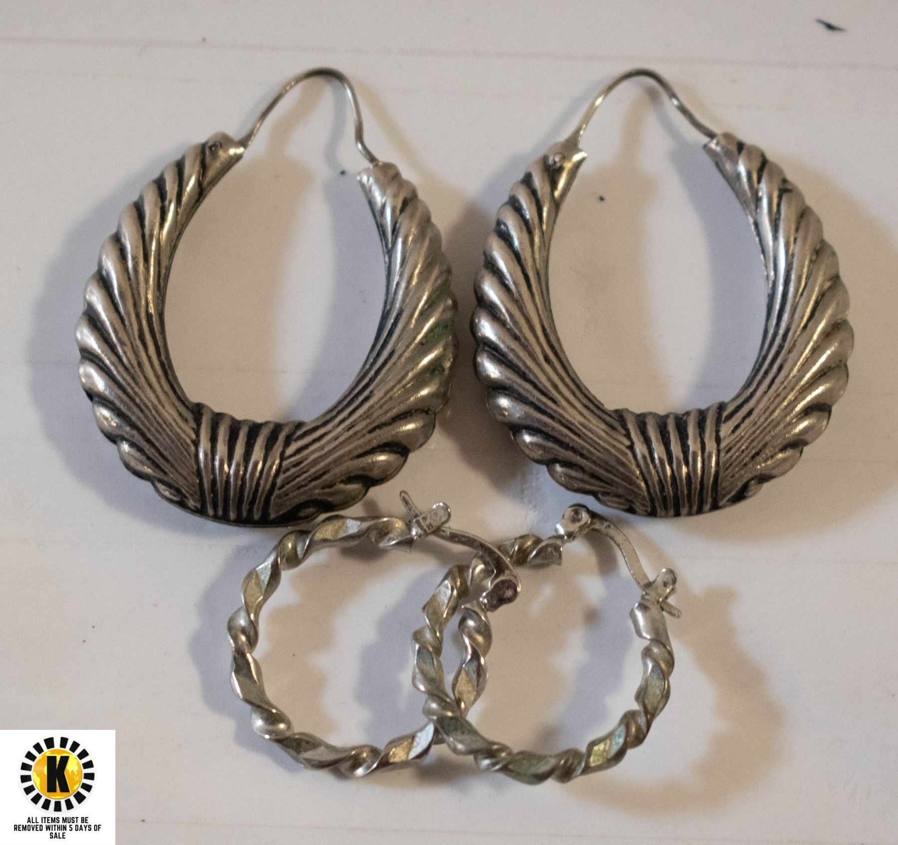 925 STERLING SILVER HOOP EARRINGS -ESTATE