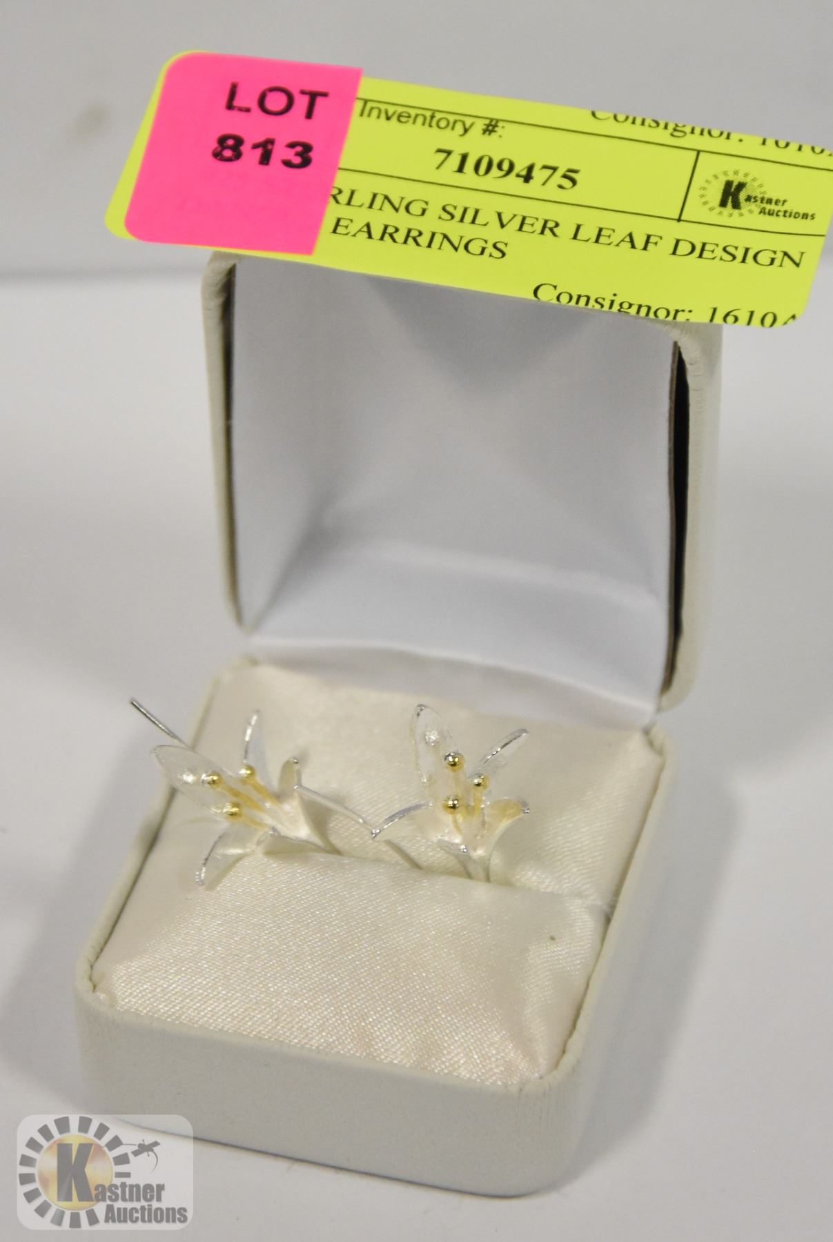 .925 STERLING SILVER LEAF DESIGN DANGLE EARRINGS