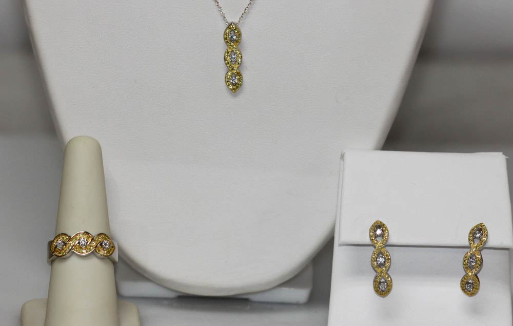 .925 STERLING SILVER MODERN SET W/ YELLOW AND CLEAR CZ **|**|** .925 STERLING SILVER MODER RING, EARRINGS, PENDINT W/ YELLOW AND CLEAR CZ