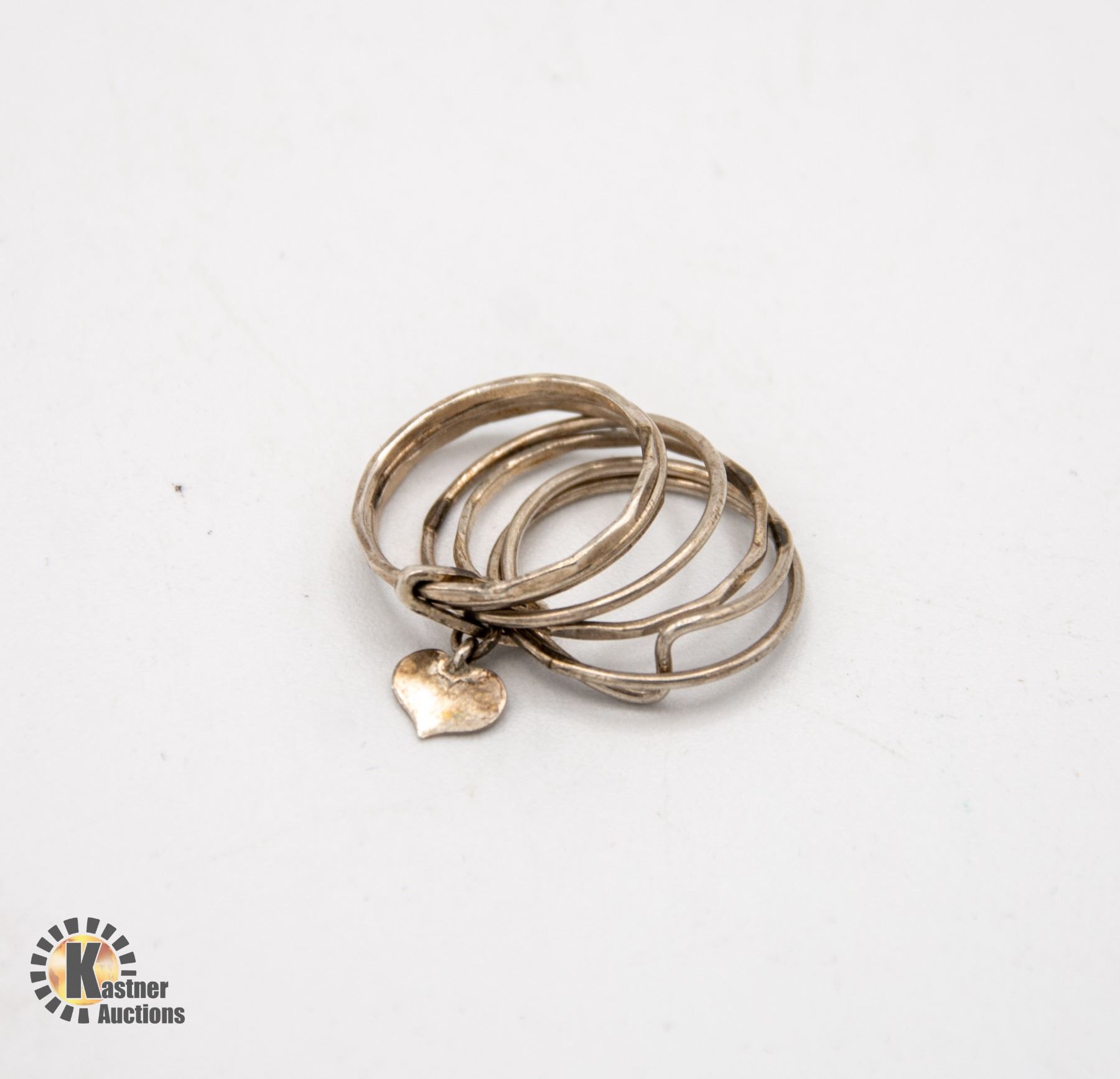 7 SMALL BANDS WITH A HEART CHARM **ALL ITEMS MUST BE REMOVED BY 5PM SATURDAY, APRIL 29TH 2023. ALL REMAINING ITEMS WILL BE SUBJECT TO A $6.00 PER DAY STORAGE CHARGE. ANY ITEMS REMAINING AFTER MONDAY, MAY 15TH, 2023 WILL BE CONSIDERED FORFEITED. NO REFUNDS WILL BE ISSUED FOR FORFEITED ITEMS. TO SCHEDULE A PICK UP APPOINTMENT CLICK HERE