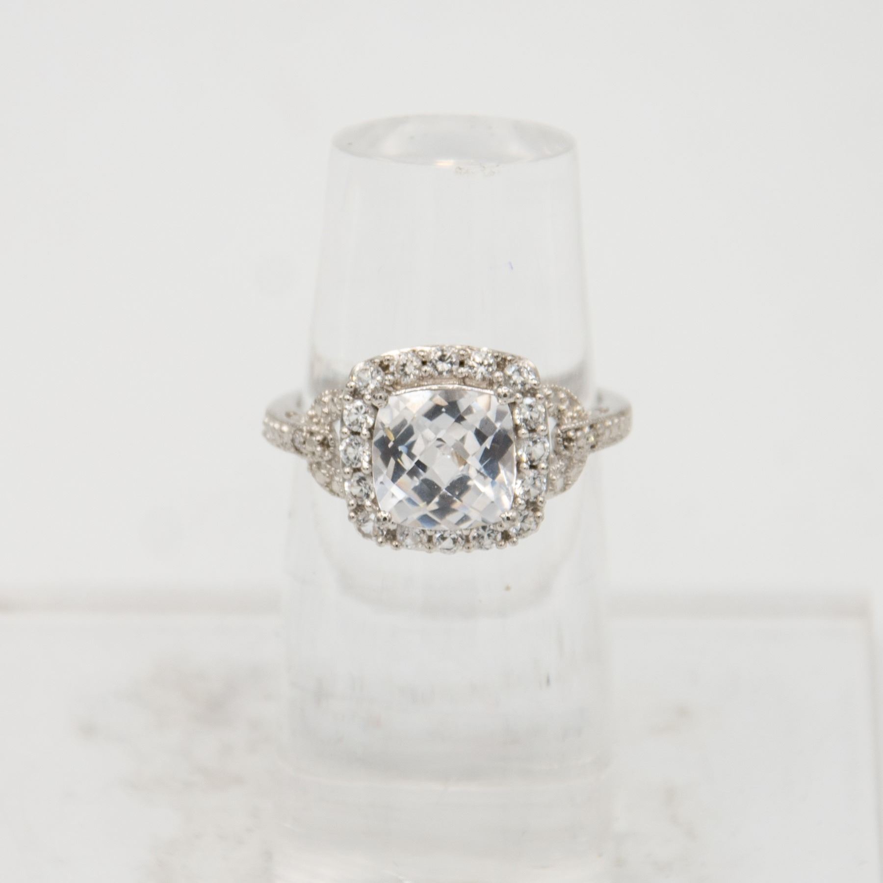 925 STERLING SILVER WHITE TOPAZ RING SIZE 7