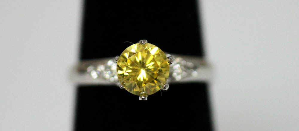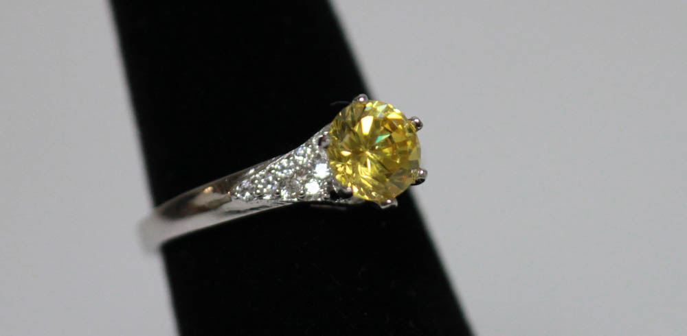 .925 STERLING SILVER YELLOW CZ SOLITAIRE RING W/WHITE C **|**|** YELLOW CZ SOLITAIRE .925 STERLING SILVER RING W/WHITE CZ RING SIZE: 5