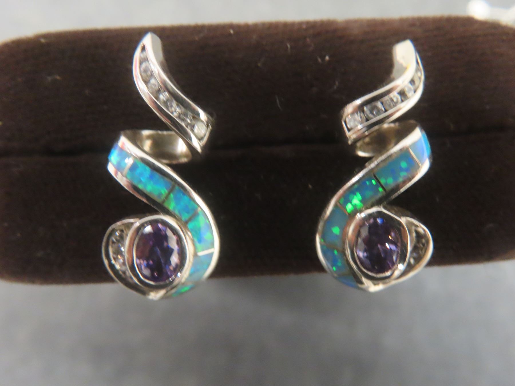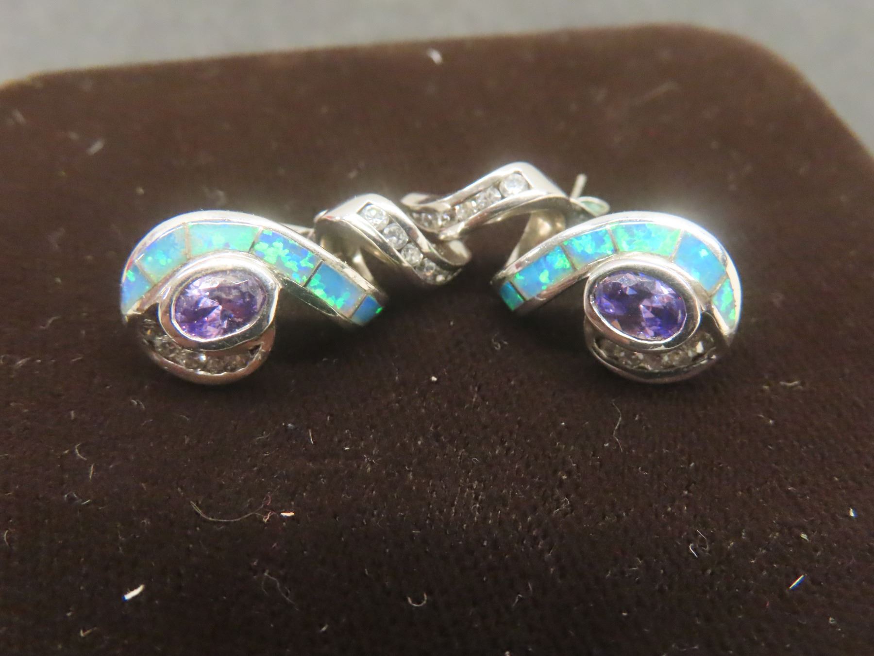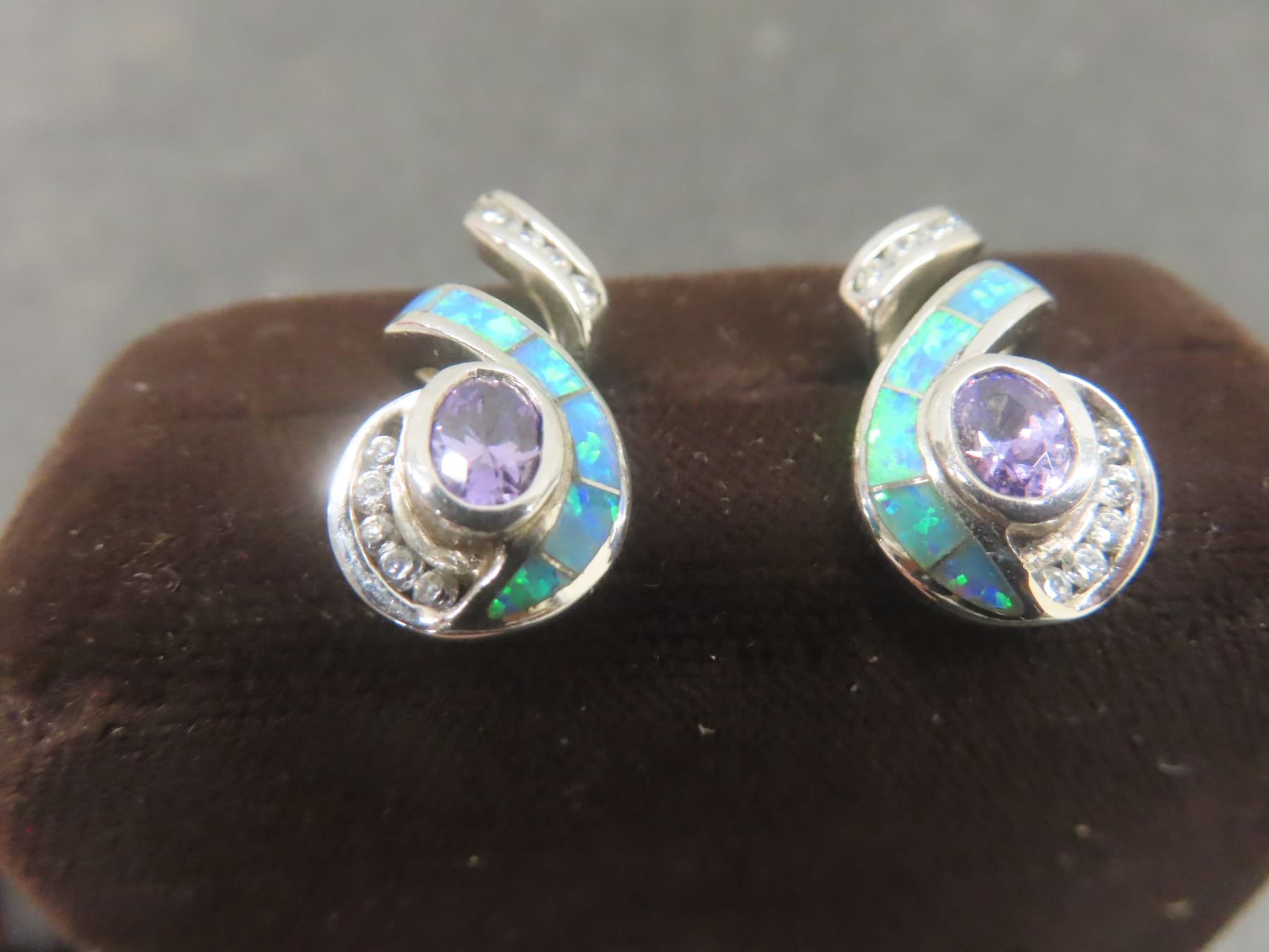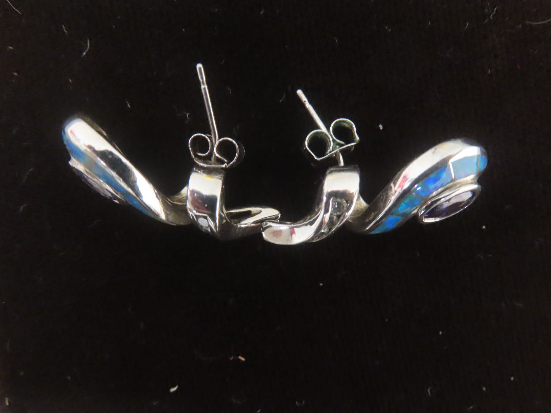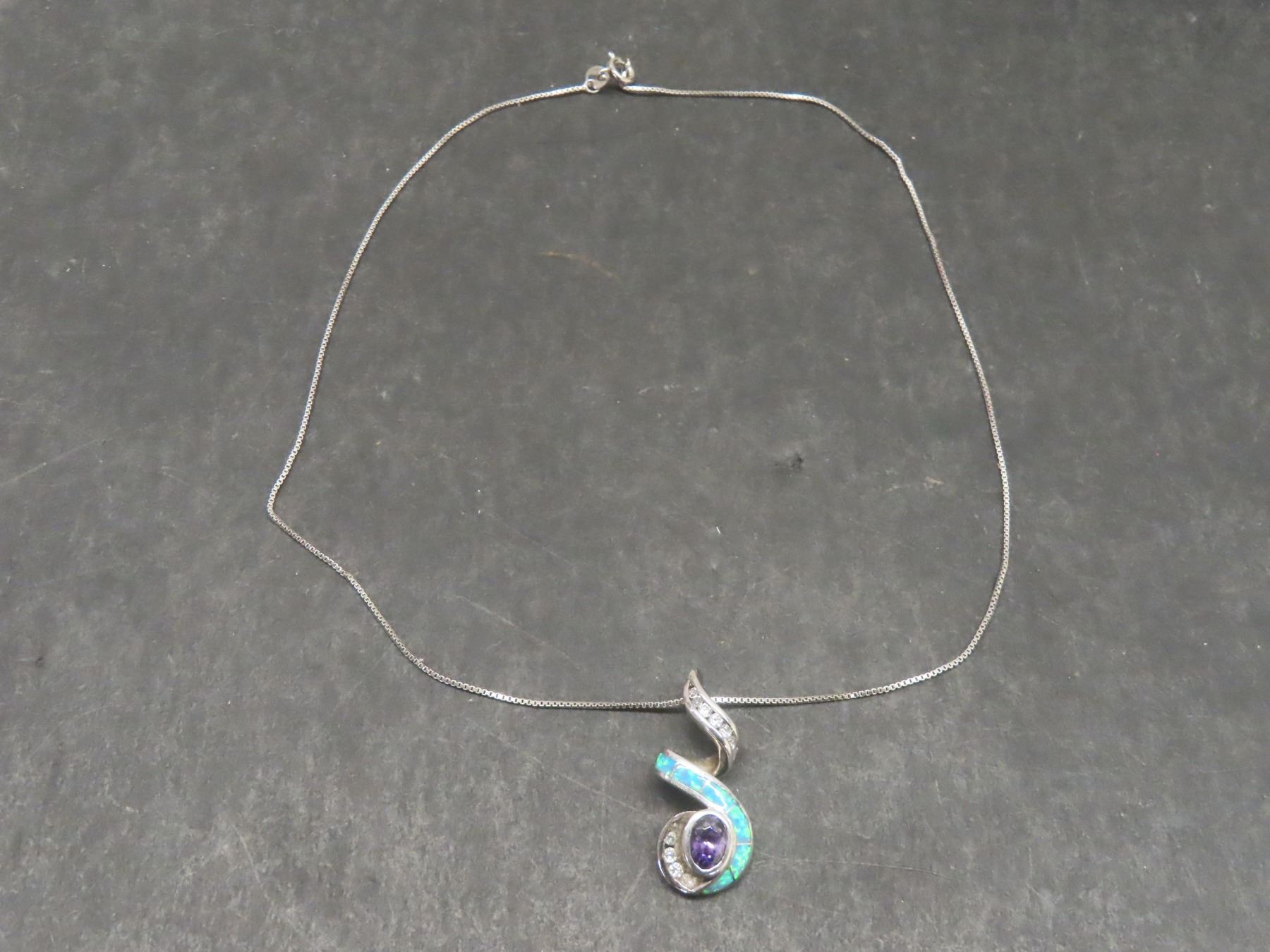 925 Silver And Blue Opal Necklace With Matching Stud Earrings