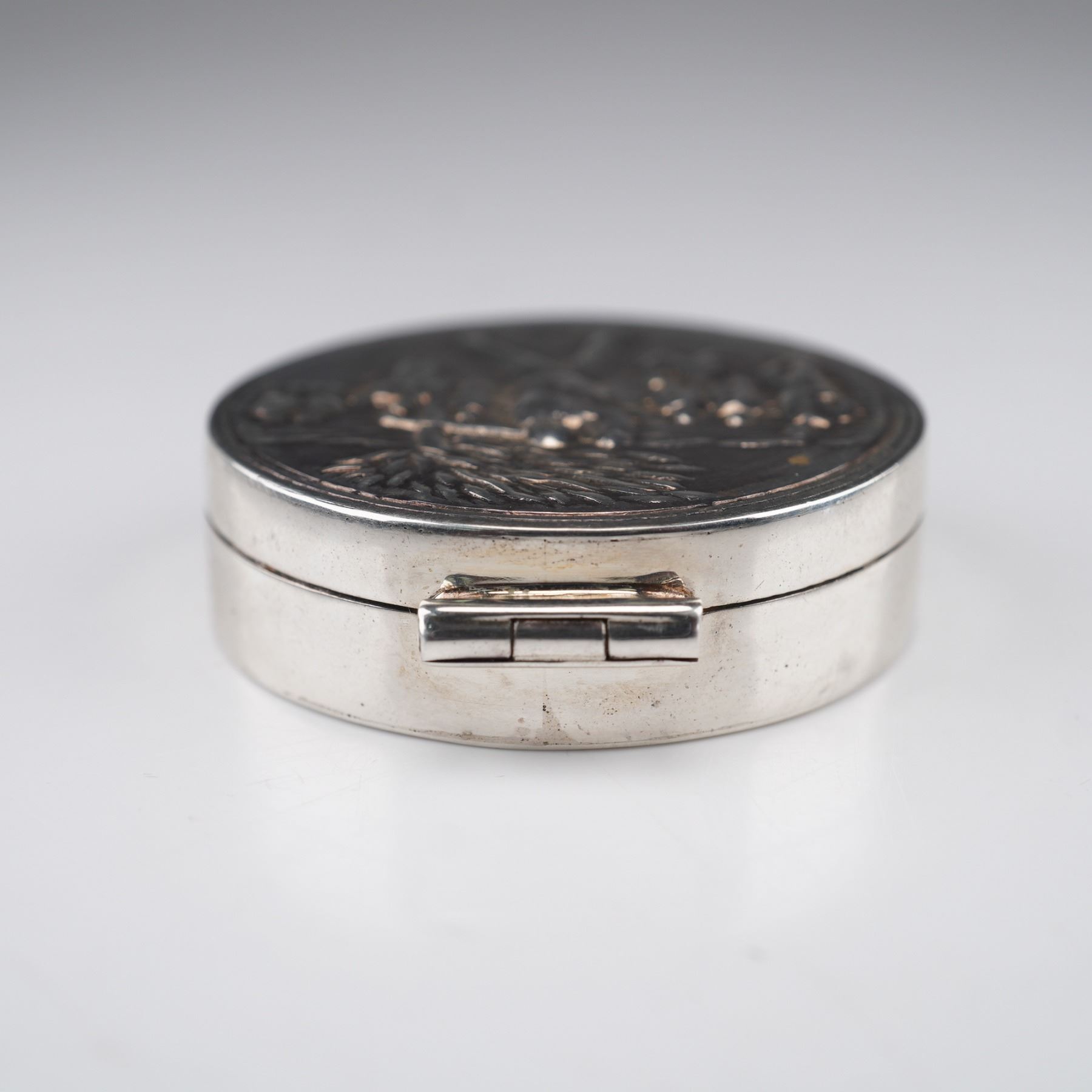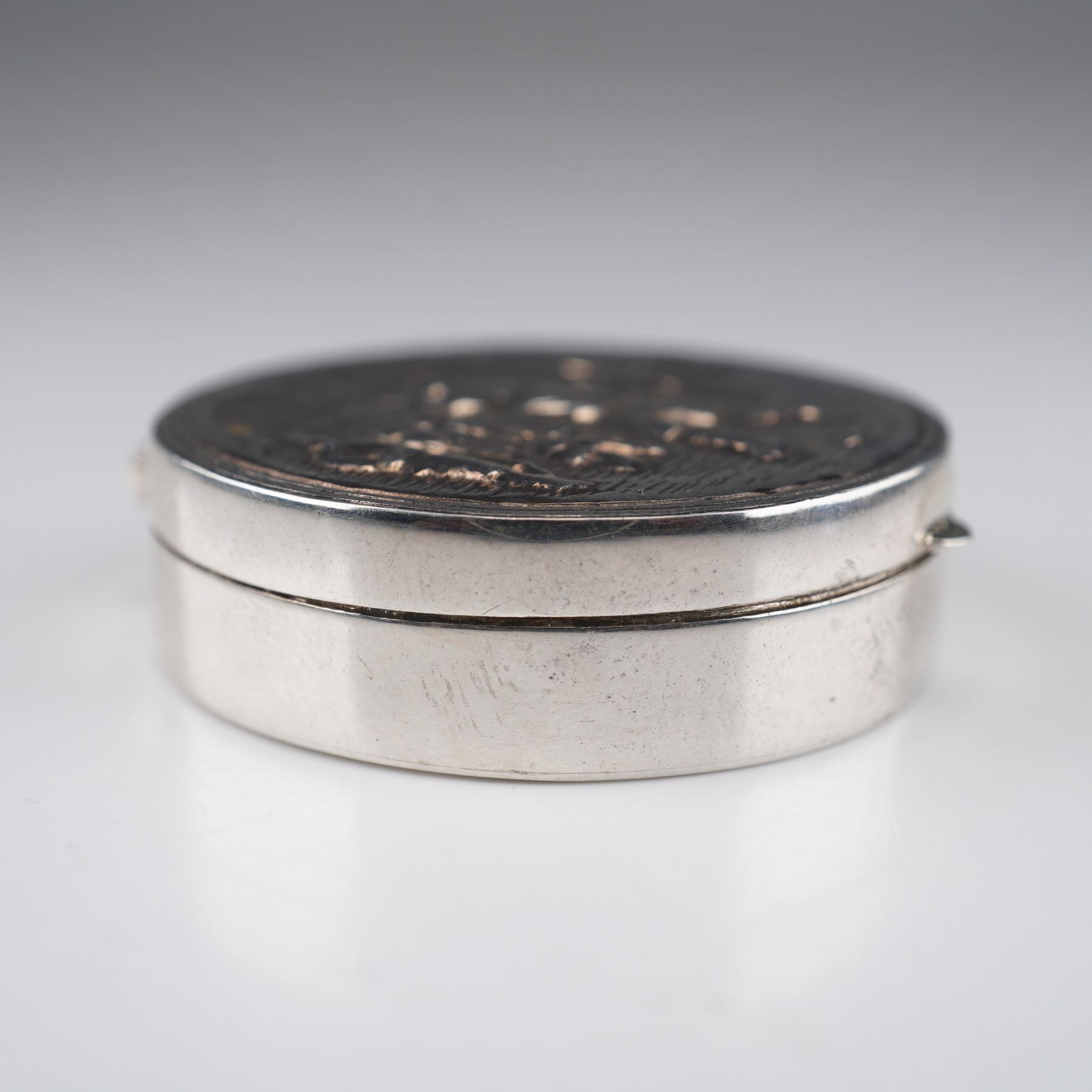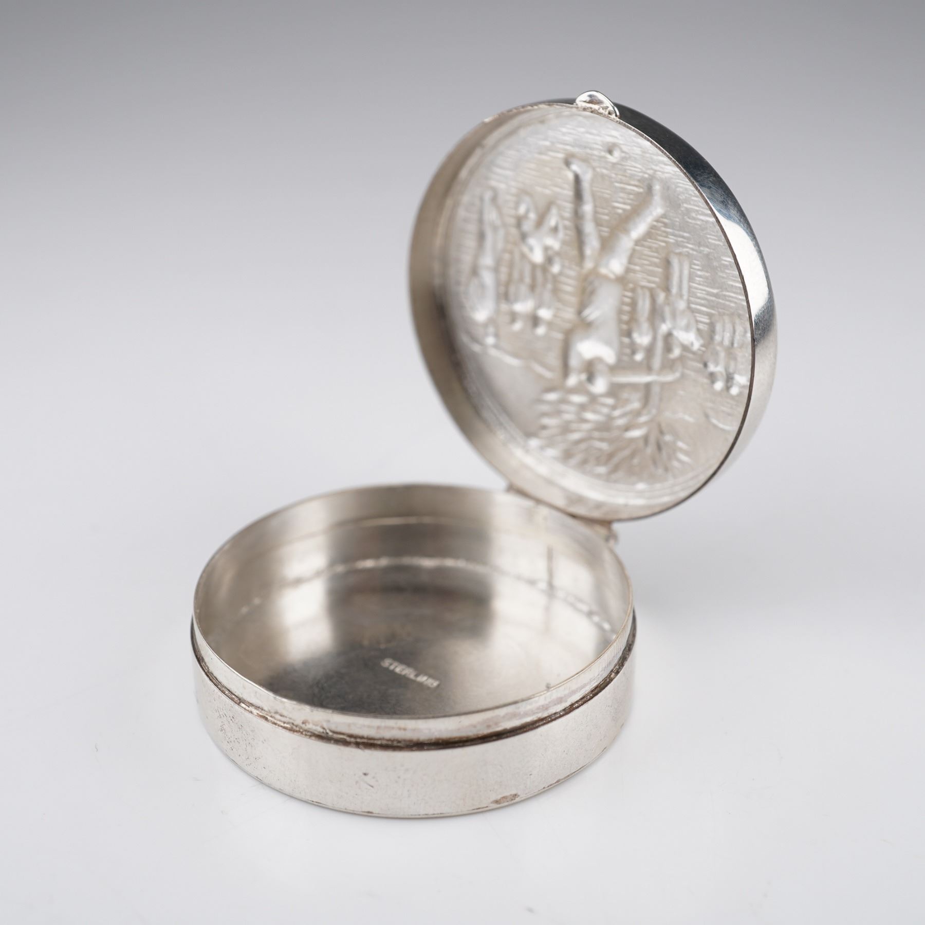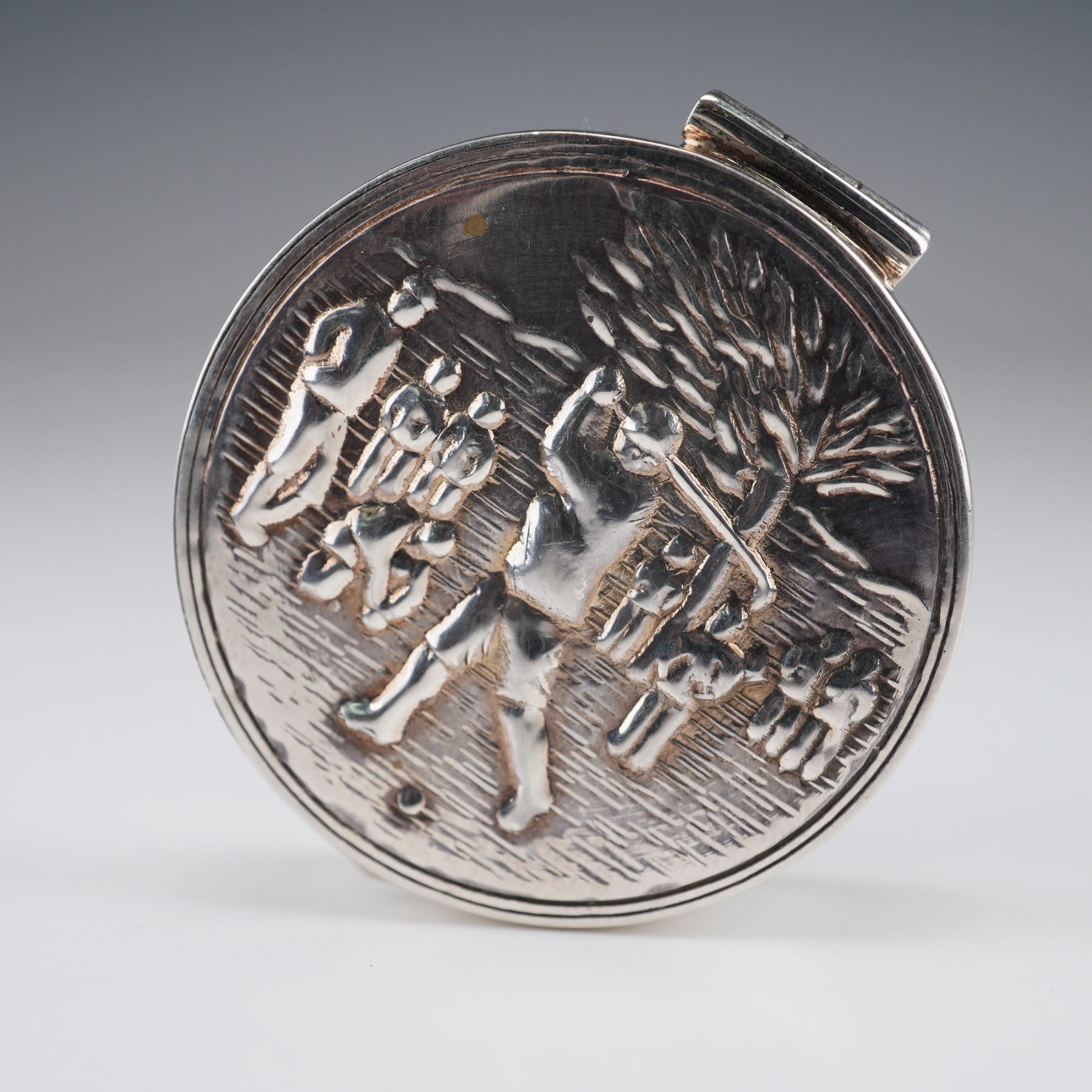 925 Silver Hand Chased Pill Box with Golf Scene on the Cover