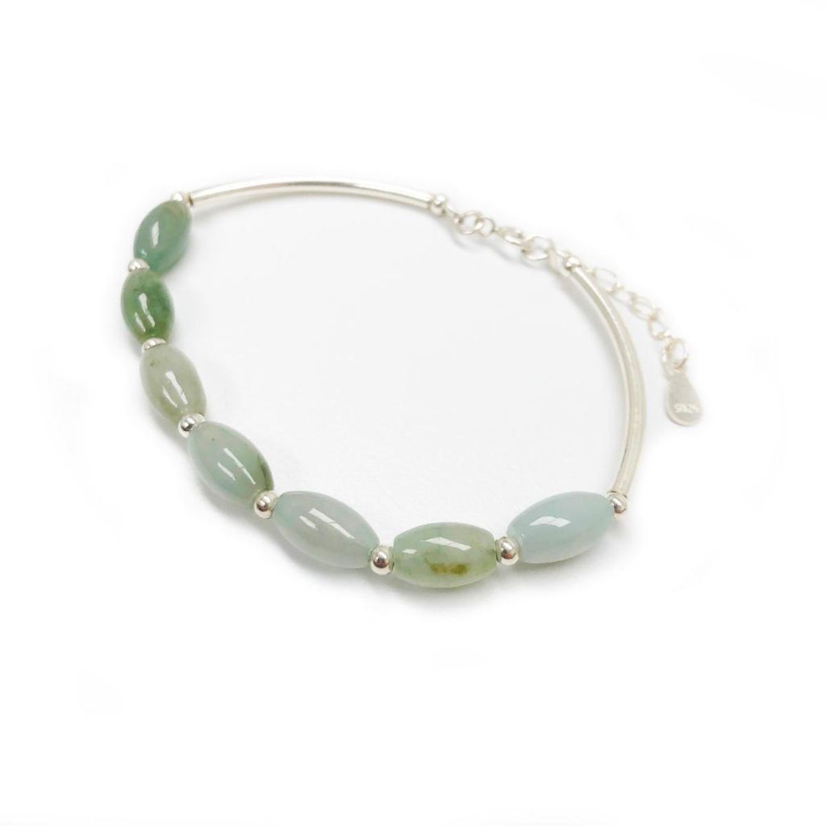925 Sterling Silver Natural Oval Green Jade Bangle. View Photos For Further Details.