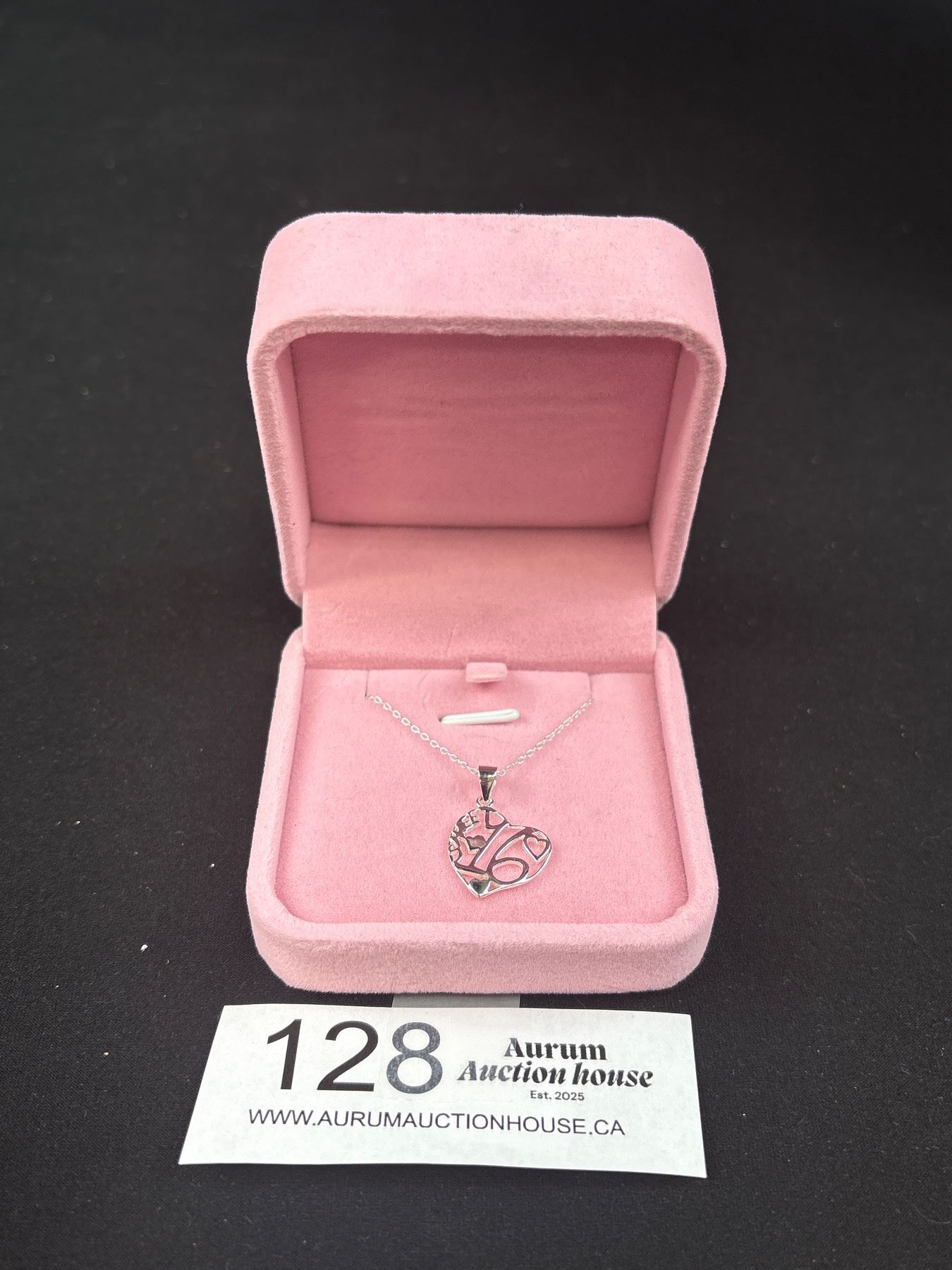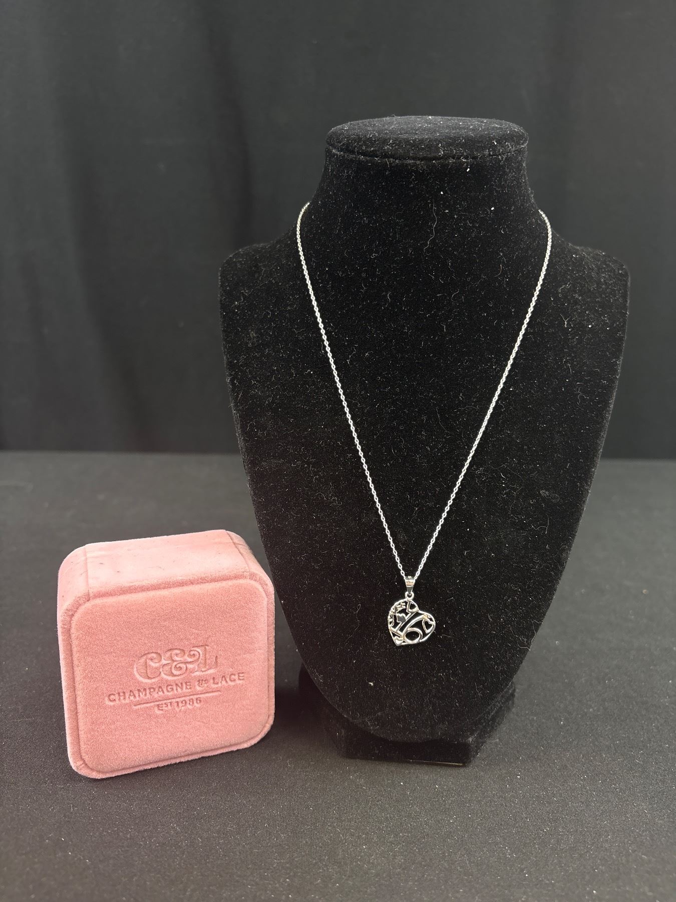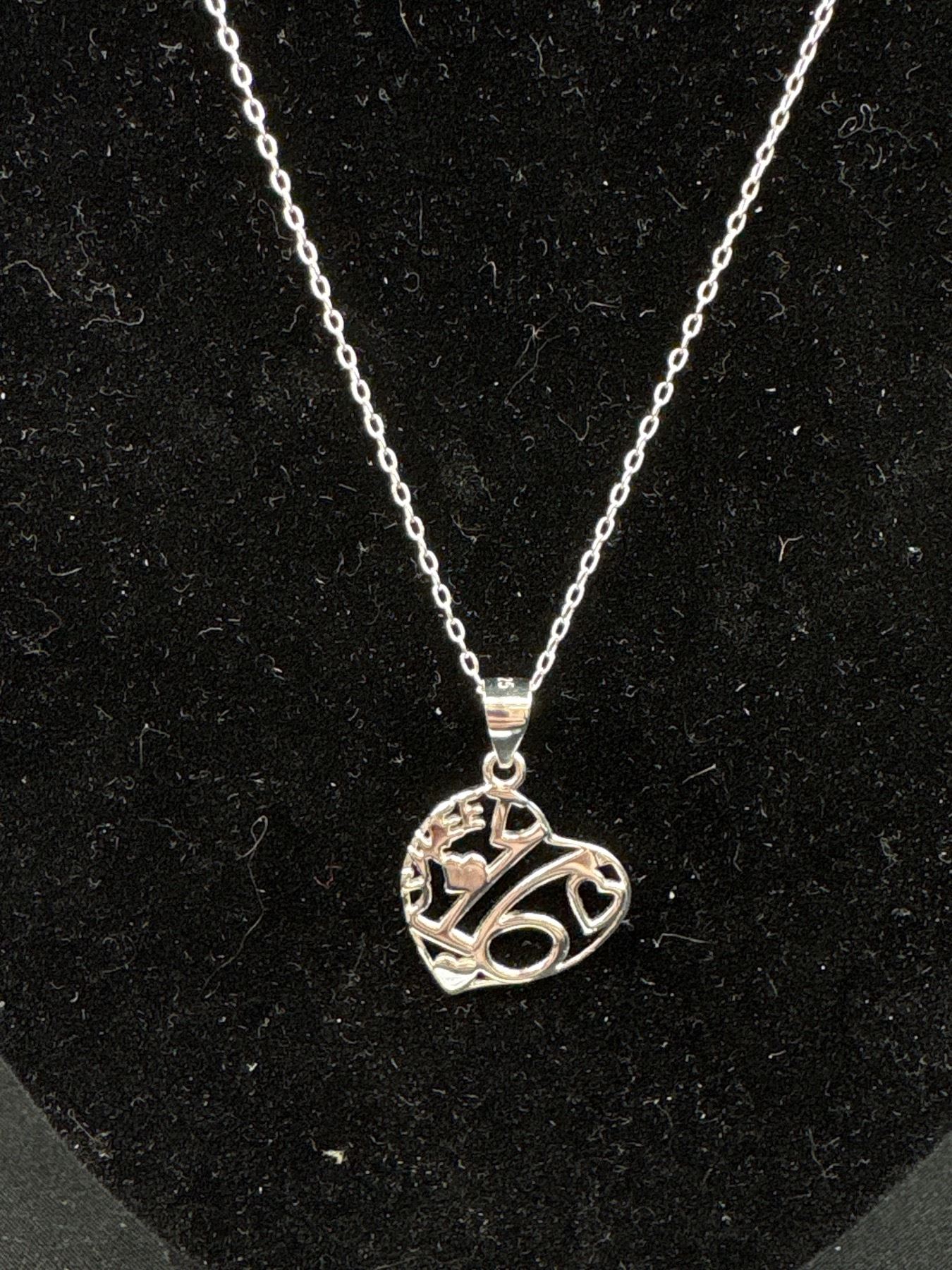 925 Sterling Silver Necklace and Pendant 18" Chain and Sweet 16 Pendant - Marked and Tested Like New