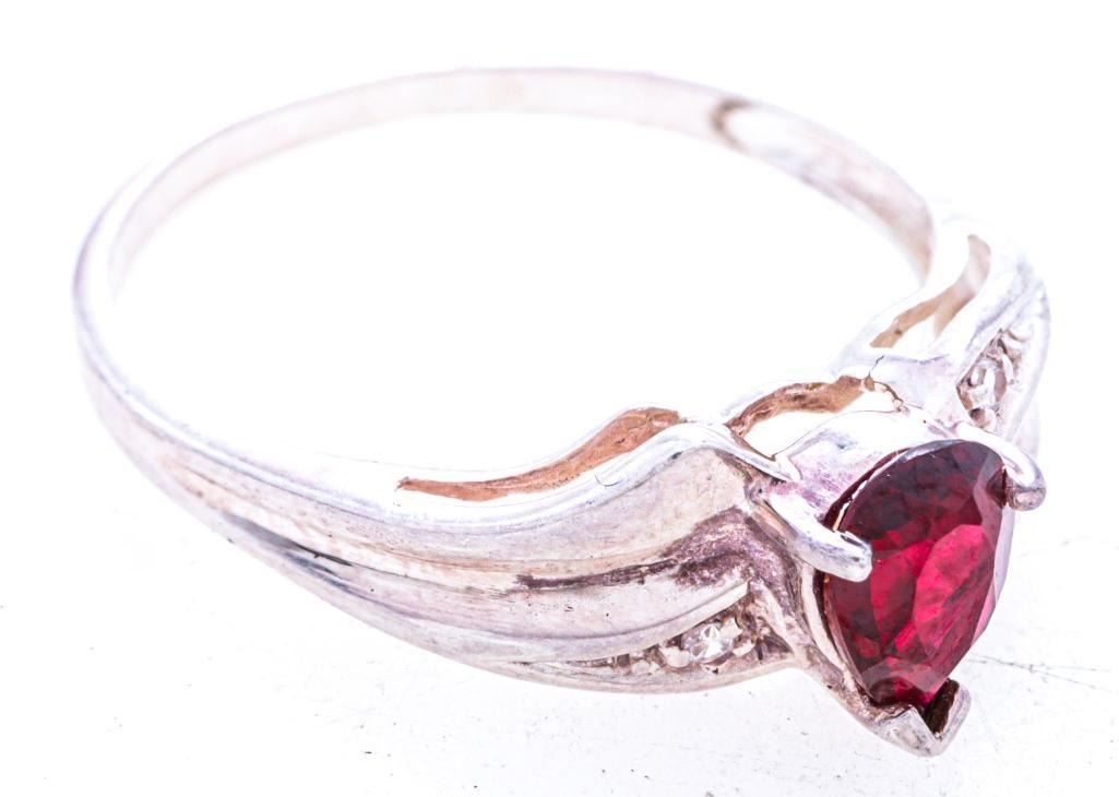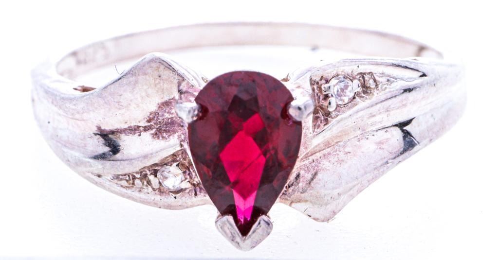 925 Sterling Silver Pear Cut ruby & Diamond Ring, Size 7