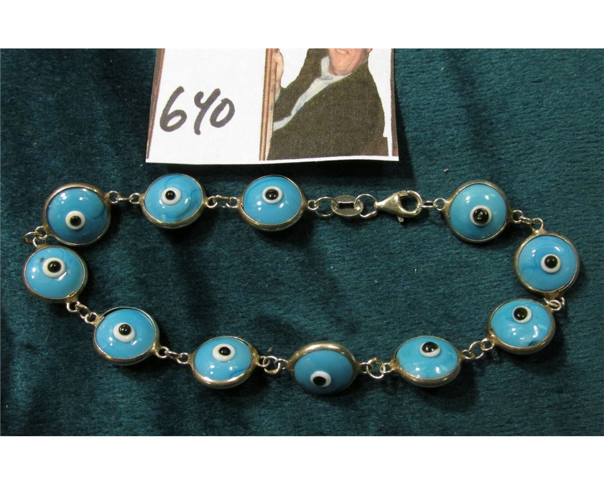 .925 Sterling Silver & Turquoise "Eye" Bracelet Neat!