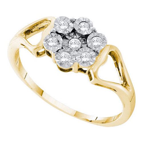 925 Sterling Silver Yellow 0.10CTW DIAMOND FLOWER RING **|**|** Source: 55769 ; Metal: Sterling Silver ; Metal Purity: 925 Sterling Silver ; Ring Size: 7 ; Main Stone: I1-I2 ; Total Carat: 0.1 ; Main Stone Color: H-I Color ; All diamonds are natural but colored diamonds are enhanced.