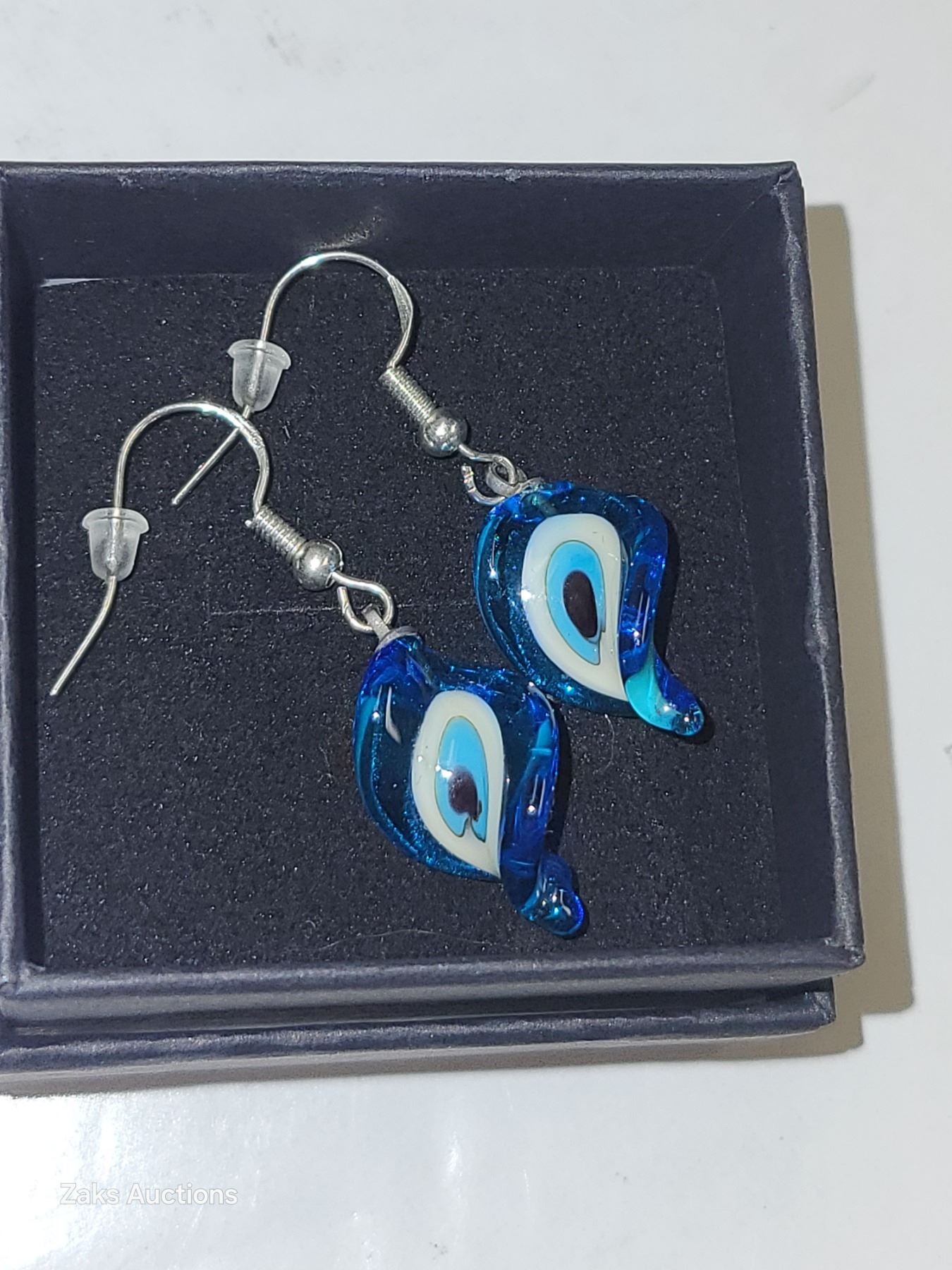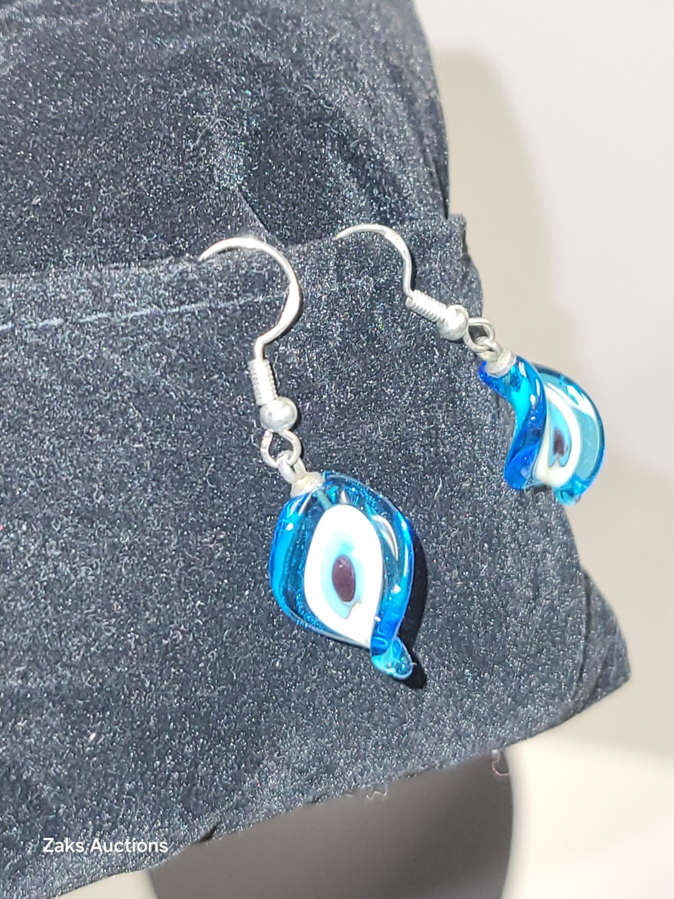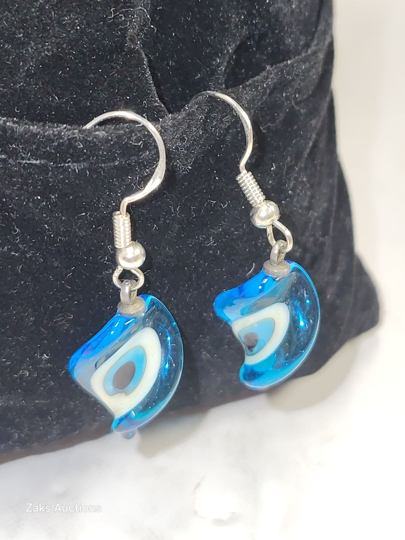 925 Twisted Blown Glass Evil Eye Pierced Earrings