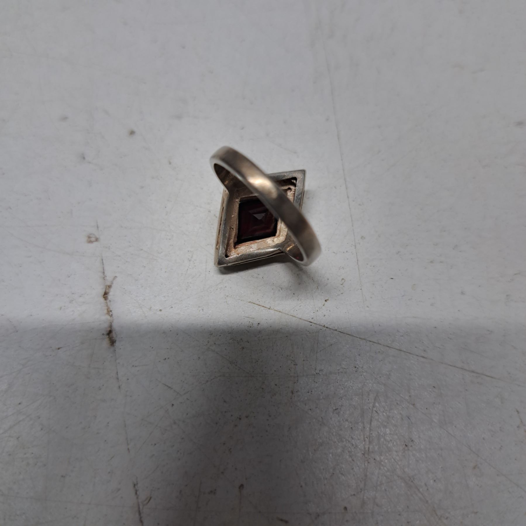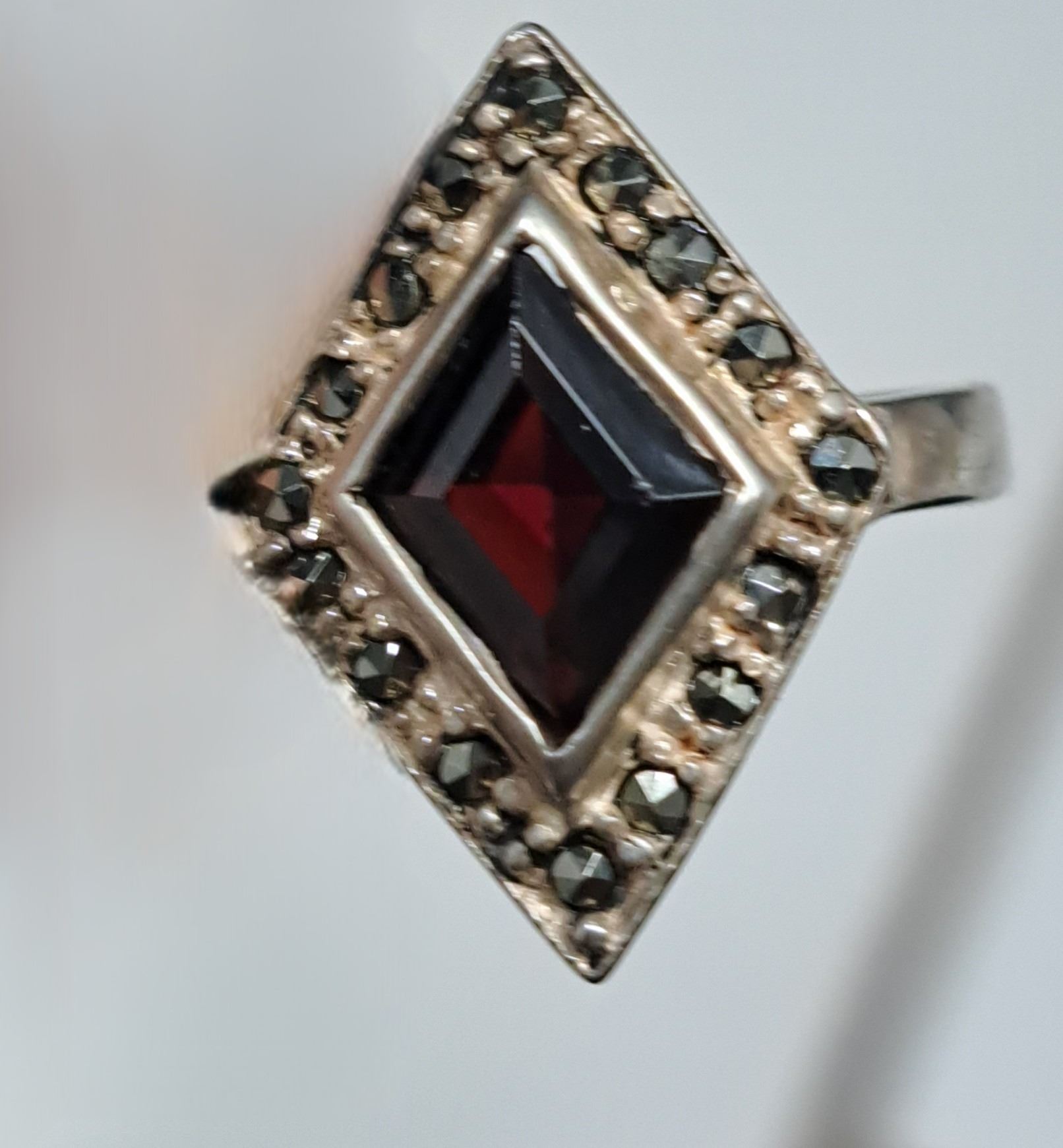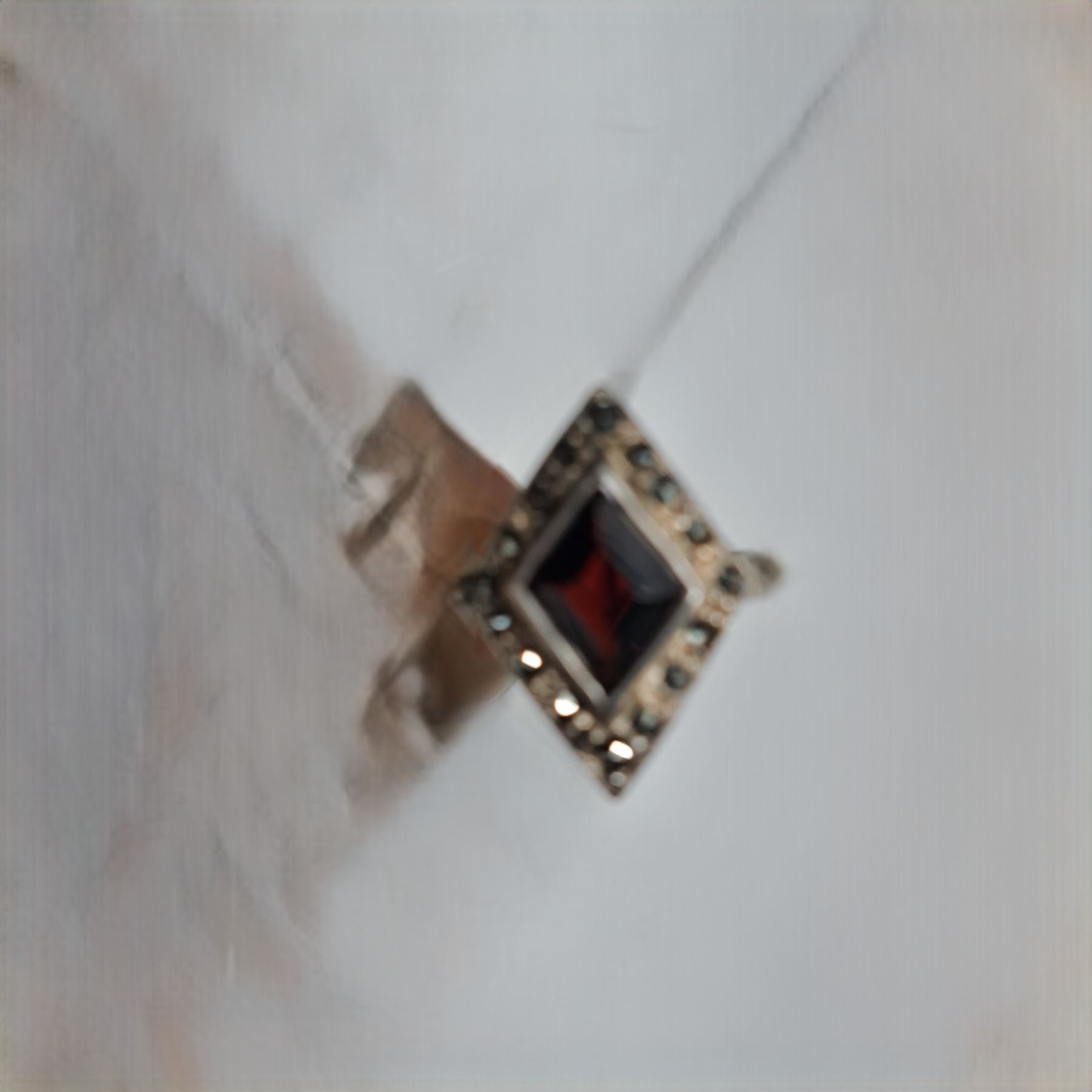 925 silver ring with maroon color stone and smaller stones