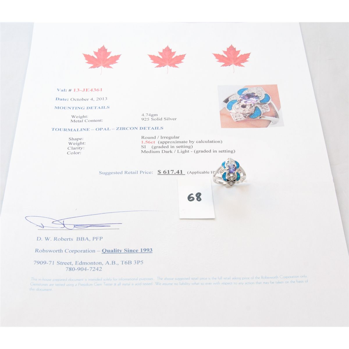 opal-zircon ring. appraised value $617.41